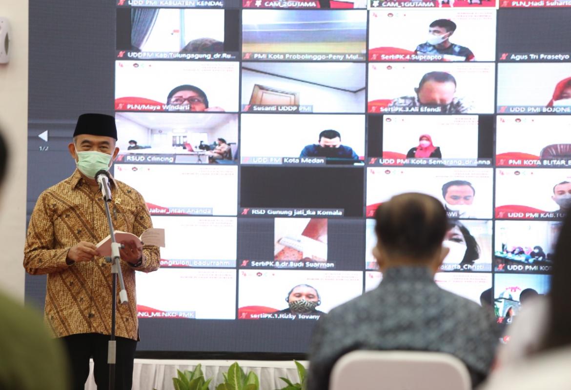 Menko PMK Memberikan Sambutan Pada Webinar Evaluasi Gerakan Nasional Pendonor Plasma Konvalesen
