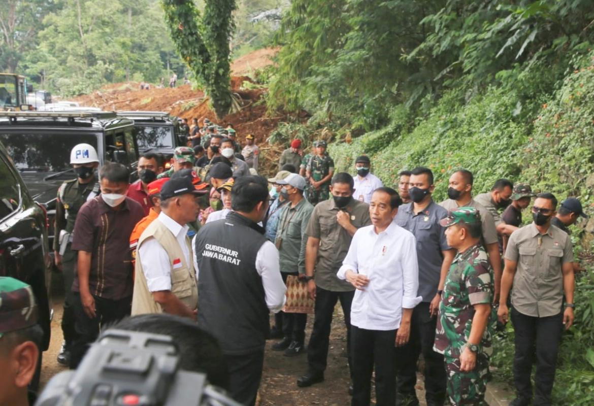Menko PMK bersama rombongan menuju ruas jalur nasional Cianjur-Cipanas longsor akibat gempa.
