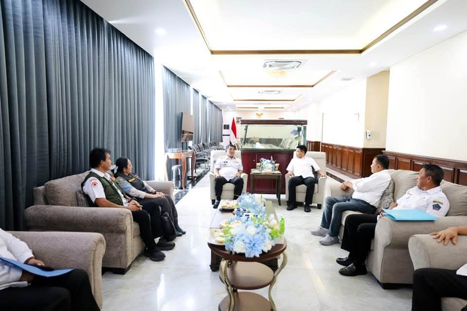 Gubernur Sulawesi Utara, Yulius Stevanus bersama Kepala BPBD dan Dinas Sosial Provinsi Sulawesi Utara menerima kehadiran rombongan di Wisma Negara Bumi Beringin, Manado.