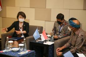 Menteri Koordinator Bidang Pembangunan Manusia dan Kebudayaan (Menko PMK) pada Pertemuan Bilateral bersama UN Assistant Secretary General UNDP Asako Okai, Senin (23/5).