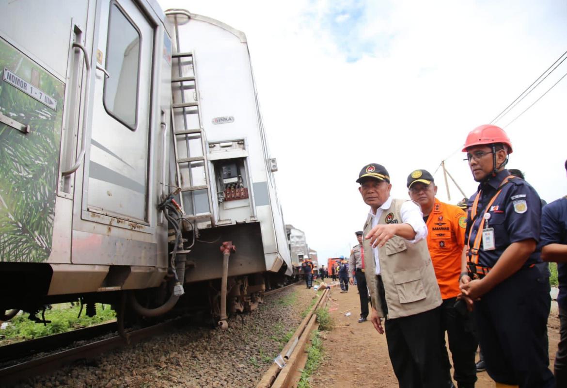 Menko PMK Tinjau Lokasi Tabrakan KA Turangga dan KA Bandung Raya, Pastikan Evakuasi Korban Berjalan Baik
