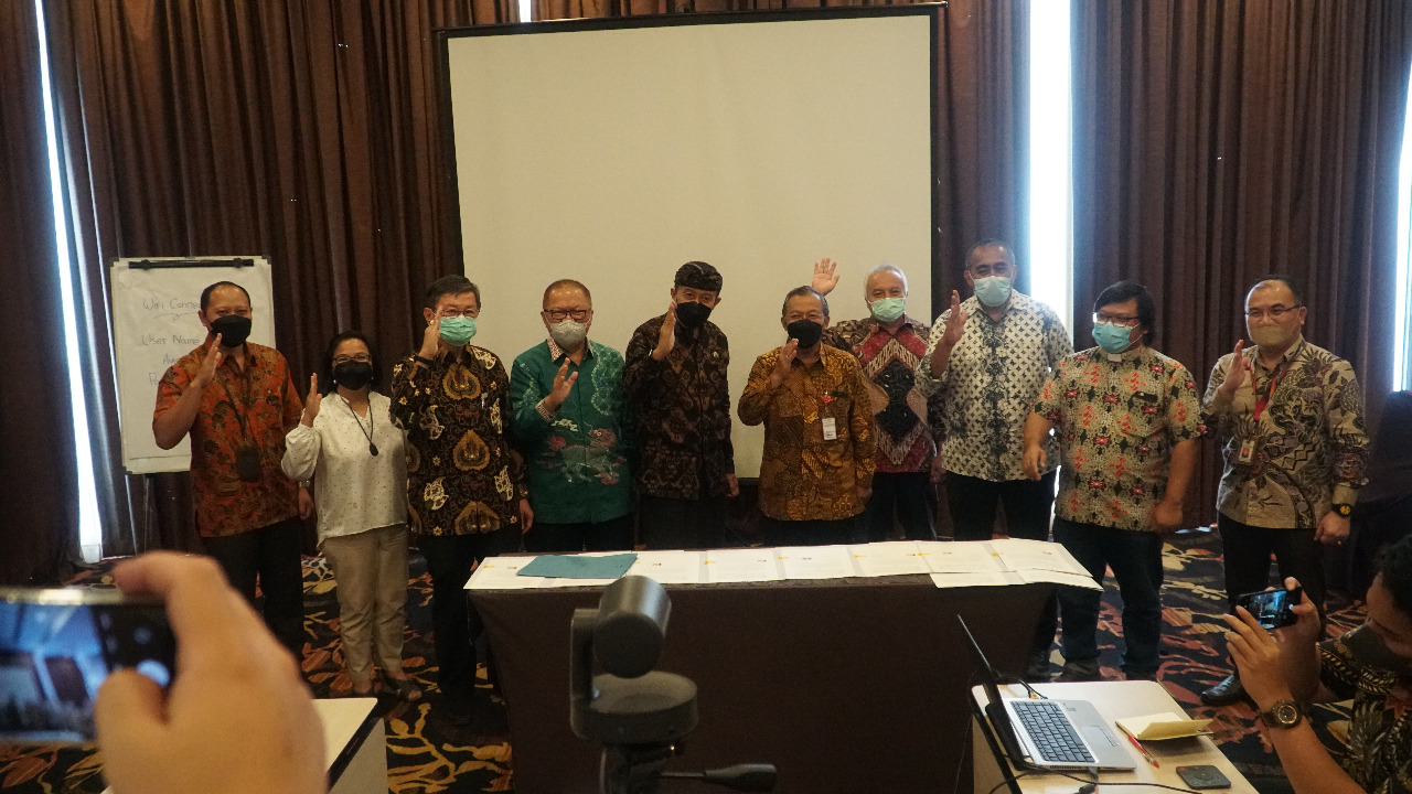 KEMENKO PMK - Lima organisasi lintas iman melakukan penandatanganan Memorandum of Understanding Gerakan Nasional Revolusi Mental (GNRM) dengan Kemenko PMK, Selasa (19/4). Bertempat di Aviary Hotel Bintaro, Tangerang Selatan, penandatanganan MoU dilakukan bersamaan dengan rapat koordinasi teknis pelaksanaan kegiatan penguatan pusat perubahan GNRM melalui partisipasi masyarakat tahun 2022.