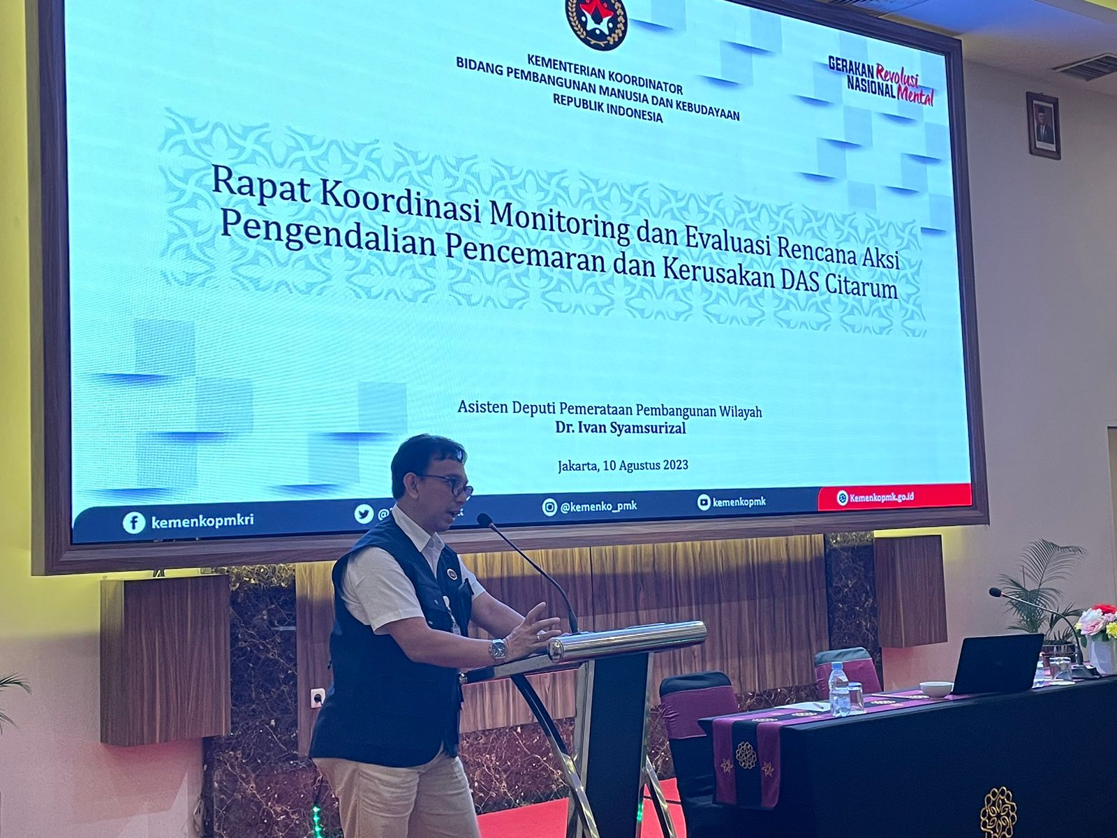 Dalam Rapat Koordinasi Monitoring dan Evaluasi Rencana Aksi Pengendalian Pencemaran dan Kerusakan (PPK) DAS Citarum yang diselenggarakan oleh Kemenko Marves pada 10 Agustus 2023 di Grand Sunshine Resort & Convention, Kabupaten Bandung, Asisten Deputi Pemerataan Pembangunan Wilayah Kemenko PMK Ivan Syamsurizal melaporkan  kondisi terkini terkait amanat Perpres 15/2018 Tentang PPK DAS Citarum.