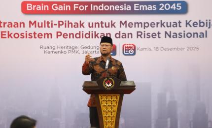 Beranda Penanggulangan Bencana dan Konflik Sosial Siaran Pers 22 Apr, 2026 Pemerintah Salurkan Rp117,96 Miliar Bantuan Stimulan Rumah Rusak di Aceh Tamiang dan Tapanuli Tengah Kesehatan 20 Apr, 2026 Kemenko PMK Perkuat Kolaborasi Lintas Sektor untuk Kesiapsiagaan Pandemi melalui Proyek CARE-I Agama Siaran Pers 19 Apr, 2026 Menko PMK Dorong Peningkatan Kualitas Layanan Haji 1447 H, Perkuat Mitigasi Risiko Agama Siaran Pers 18 Apr, 2026 Menko PMK: Nilai Nyepi Relevan di Tengah Kebisingan Dunia, Jadi Fondasi Karakter dan Kebijaksanaan Pemuda & Olahraga 15 Apr, 2026 Kemenko PMK Dorong Integrasi Car Free Day sebagai Gerakan Pembudayaan Olahraga Peningkatan Kualitas Keluarga dan Kependudukan Perempuan & Anak 13 Apr, 2026 Kemenko PMK Dorong Penguatan Layanan Haji Inklusif bagi Lansia dan Penyandang Disabilitas Peningkatan Kualitas Pendidikan 10 Apr, 2026 Indonesia - Korea Perkuat Kerjasama AI untuk Kesehatan Dasar dan Pembangunan Manusia Budaya 09 Apr, 2026 Kemenko PMK Tekankan Pentingnya Resiliensi Manusia dan Budaya dalam Munas X LDII Penanggulangan Bencana dan Konflik Sosial 08 Apr, 2026 Pemerintah Dorong Penguatan Aksi Respons Peringatan Dini untuk Penanganan Bencana yang Lebih Antisipatif Kesehatan 07 Apr, 2026 Kemenko PMK Perkuat Monev Pelaksanaan MBG, Pastikan Keamanan Pangan, Standar Gizi Terpenuhi dan Ketepatan Sasaran Fokus dan Artikel Penanggulangan Bencana dan Konflik Sosial 01 Apr, 2026 Laporan Indonesia Disaster Management Summit Tahun 2025 Koordinasi PMK 03 Feb, 2026 Buku Panduan Srikandi V3 Penanggulangan Bencana dan Konflik Sosial Siaran Pers 03 Dec, 2025 Menko PMK Dorong “Technology for Humanity” untuk Kebijakan dan Penanganan Bencana Penanggulangan Bencana dan Konflik Sosial 02 Dec, 2025 November Siaga: Menguatkan Kesiapsiagaan, Mengokohkan Kolaborasi Penanggulangan Bencana dan Konflik Sosial Siaran Pers 28 Nov, 2025 Menko PMK Tegaskan Arahan Presiden Tangani Bencana di Sumatra: Tanggap Darurat Cepat, Tepat, dan Terkoordinasi Kolom Fokus Opini Artikel Kesehatan 13 Nov, 2025 Menko PMK: Penanganan Stunting Harus Jadi Kerja Bersama, Tak Bisa Satu Kementerian Saja Perempuan & Anak 11 Aug, 2025 Menko PMK: Kabupaten/Kota Layak Anak Bukan Sekadar Liveable, Tapi Harus Lovable Kesehatan 06 Aug, 2025 Menko PMK Dorong Penguatan Ekosistem untuk Tingkatkan SDM Kesehatan Bojonegoro Kesehatan Peningkatan Kualitas Pendidikan 05 Aug, 2025 Menko PMK: Makan Bergizi Harus Jadi Kebiasaan Sehari-hari, Bukan Hanya di Sekolah Penguatan Karakter dan Jati Diri Bangsa Siaran Pers 29 Jul, 2025 Menko PMK: Indonesia Siap Jadi Laboratorium Persaudaraan Manusia Artikel Penanggulangan Bencana dan Konflik Sosial 01 Apr, 2026 Laporan Indonesia Disaster Management Summit Tahun 2025 Koordinasi PMK 03 Feb, 2026 Buku Panduan Srikandi V3 Penanggulangan Bencana dan Konflik Sosial Siaran Pers 03 Dec, 2025 Menko PMK Dorong “Technology for Humanity” untuk Kebijakan dan Penanganan Bencana Penanggulangan Bencana dan Konflik Sosial 02 Dec, 2025 November Siaga: Menguatkan Kesiapsiagaan, Mengokohkan Kolaborasi Opini Penguatan Karakter dan Jati Diri Bangsa Budaya 08 Nov, 2025 1000 Pelaku Seni dan Budaya Ikuti Bakti Negeri Bersama Menko PMK di Bandung Kegiatan Bakti Negeri untuk Pelaku Seni dan Budaya Perempuan & Anak Koordinasi PMK Siaran Pers 15 Jul, 2025 Peringati Hari Anak Nasional 2025, Menko PMK Ajak Anak Hidup Sehat dan Bijak Berteknologi Peningkatan Kualitas Pendidikan Koordinasi PMK Siaran Pers 13 Jul, 2025 Santri Bisa Kuliah dari Pesantren, Menko PMK Dorong Akses Pendidikan Tinggi Digital Peningkatan Kualitas Keluarga dan Kependudukan 13 Jul, 2025 Menko PMK: Kapital Paling Berharga Adalah Manusia, Bukan Sekadar Angka Konten Terkini Penanggulangan Bencana dan Konflik Sosial 22 Apr, 2026 Kemenko PMK Matangkan Skema Bantuan Perbaikan Rumah Rusak Pascabencana Penanggulangan Bencana dan Konflik Sosial Siaran Pers 22 Apr, 2026 Pemerintah Salurkan Rp117,96 Miliar Bantuan Stimulan Rumah Rusak di Aceh Tamiang dan Tapanuli Tengah Kesehatan 20 Apr, 2026 Kemenko PMK Perkuat Kolaborasi Lintas Sektor untuk Kesiapsiagaan Pandemi melalui Proyek CARE-I Agama Siaran Pers 19 Apr, 2026 Menko PMK Dorong Peningkatan Kualitas Layanan Haji 1447 H, Perkuat Mitigasi Risiko Penanggulangan Bencana dan Konflik Sosial 18 Apr, 2026 Kemenko PMK Dorong Sinergi Lintas Sektor untuk Implementasi SPAB 2025–2029 Peningkatan Kualitas Keluarga dan Kependudukan 18 Apr, 2026 Kemenko PMK Tinjau Pelaksanaan Kampung KB, Kampung Zakat, dan MBG di Bandung Barat Penanggulangan Bencana dan Konflik Sosial 18 Apr, 2026 Kemenko PMK Perkuat Koordinasi Lintas Sektor untuk Peringatan Dini Cuaca Berbasis Dampak Agama Siaran Pers 18 Apr, 2026 Menko PMK: Nilai Nyepi Relevan di Tengah Kebisingan Dunia, Jadi Fondasi Karakter dan Kebijaksanaan Penanggulangan Bencana dan Konflik Sosial 17 Apr, 2026 Kemenko PMK Dorong Pembangunan SDM Berkualitas di Papua melalui Penguatan Sinergi Lintas Sektor Penanggulangan Bencana dan Konflik Sosial 16 Apr, 2026 Kolaborasi Lintas Sektor, Pemerintah Perkuat Ketangguhan Bencana Berbasis Teknologi Penanggulangan Bencana dan Konflik Sosial 16 Apr, 2026 Kemenko PMK Dukung Penguatan Sistem Peringatan Dini Banjir Berbasis Komunitas di Bogor Pemuda & Olahraga 15 Apr, 2026 Kemenko PMK Dorong Integrasi Car Free Day sebagai Gerakan Pembudayaan Olahraga Kementerian Terkait Instagram kemenko_pmk Unggulan Terkini Peningkatan Kualitas Pendidikan Siaran Pers 24 Mar, 2026 Percepatan Transformasi Pemerintahan dan Peningkatan Kualitas Pembelajaran Siswa Penanggulangan Bencana dan Konflik Sosial Koordinasi PMK 31 Dec, 2025 Pemerintah Perkuat Koordinasi Rehabilitasi dan Rekonstruksi Pascabencana: Build Back Better, Safer, and Sustainable Penanggulangan Bencana dan Konflik Sosial Siaran Pers 18 Nov, 2025 Menko PMK Tinjau Penanganan Darurat Longsor Banjarnegara, Pemerintah Intensifkan Upaya Evakuasi dan Penyediaan Hunian Sementara Peningkatan Kualitas Pendidikan Siaran Pers 14 Nov, 2025 Pemerintah Percepat Revitalisasi Pendidikan Vokasi dan Pelatihan Voka