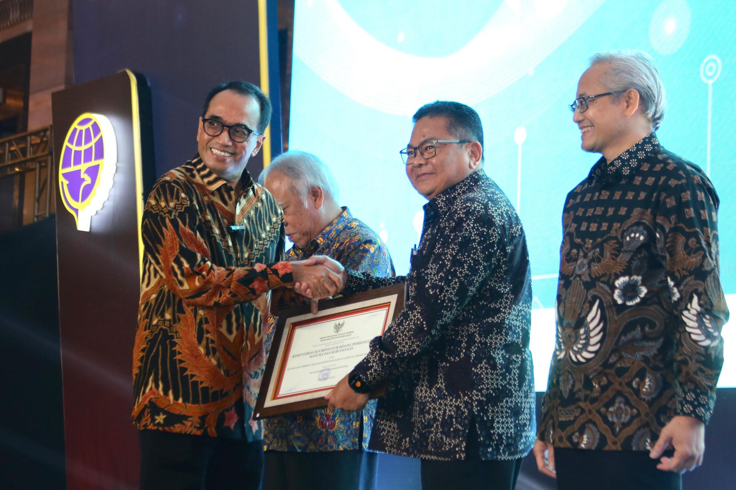 Mewakili Menko PMK, Staf Ahli Bidang Transformasi Birokrasi Kemenko PMK Aris Darmansyah Edisaputra menerima secara langsung penghargaan yang diberikan oleh Menteri Perhubungan Budi Karya Sumadi.
