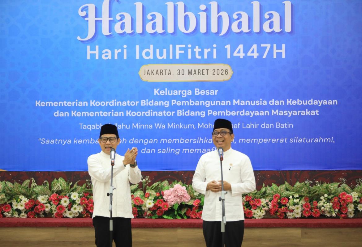 Halalbihalal Kemenko PMK–Kemenko PM, Menko PMK Ajak Perkuat Kolaborasi dan Optimisme