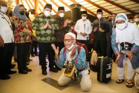 Menteri Koordinator Bidang Pembangunan Manusia dan Kebudayaan (Kemenko PMK) menyambut kepulangan jamaah haji kloter p