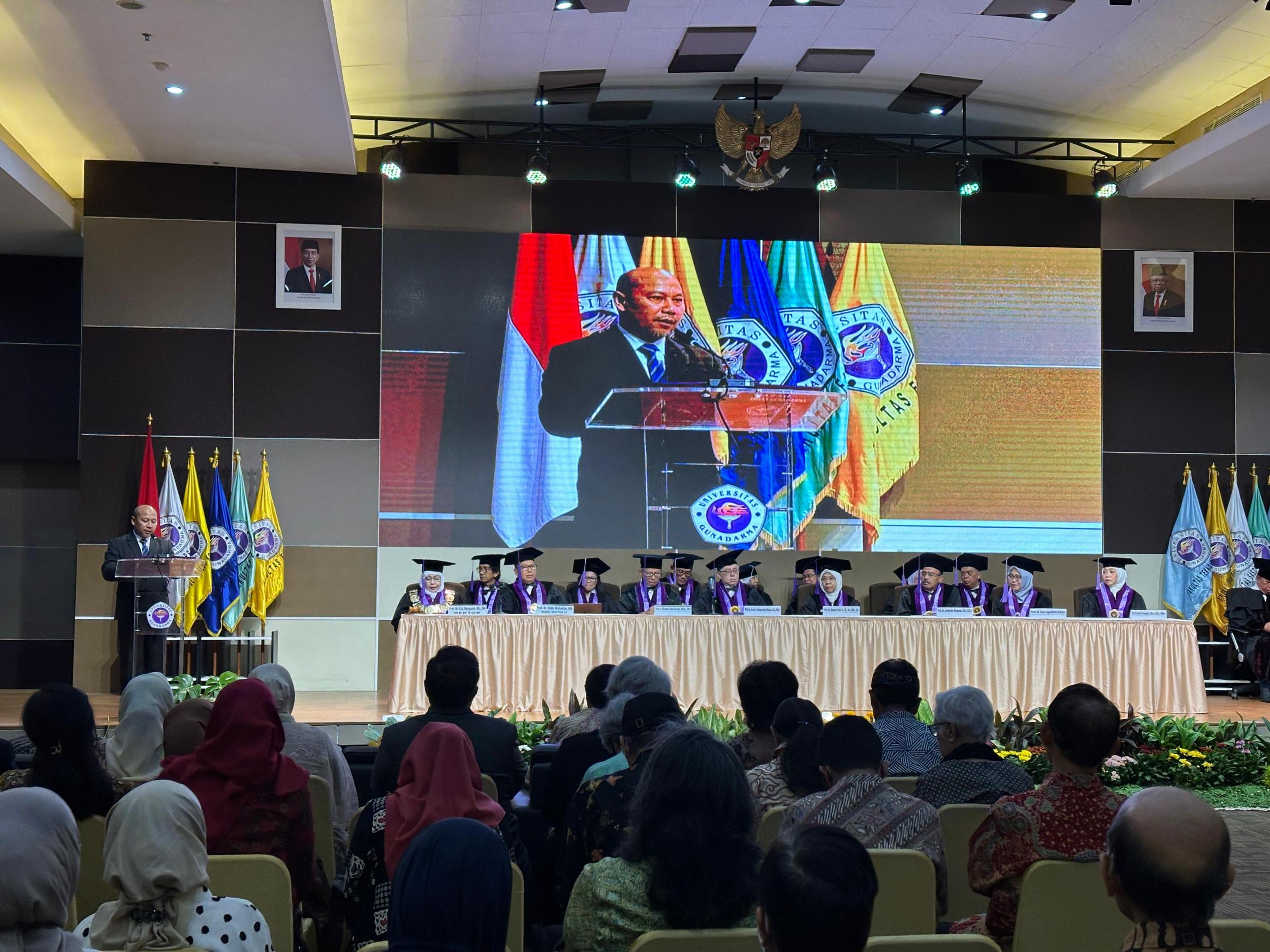 "Hari ini, kita semua berkumpul untuk memberikan penghormatan dan ucapan selamat kepada kedua Profesor yang telah membuktikan ketekunan, pengetahuan, dan dedikasinya. Penghargaan ini adalah buah dari perjuangan dalam menggapai puncak keilmuan, menggambarkan betapa pentingnya peran Guru Besar sebagai seorang akademisi dan pionir," tutur Warsito.