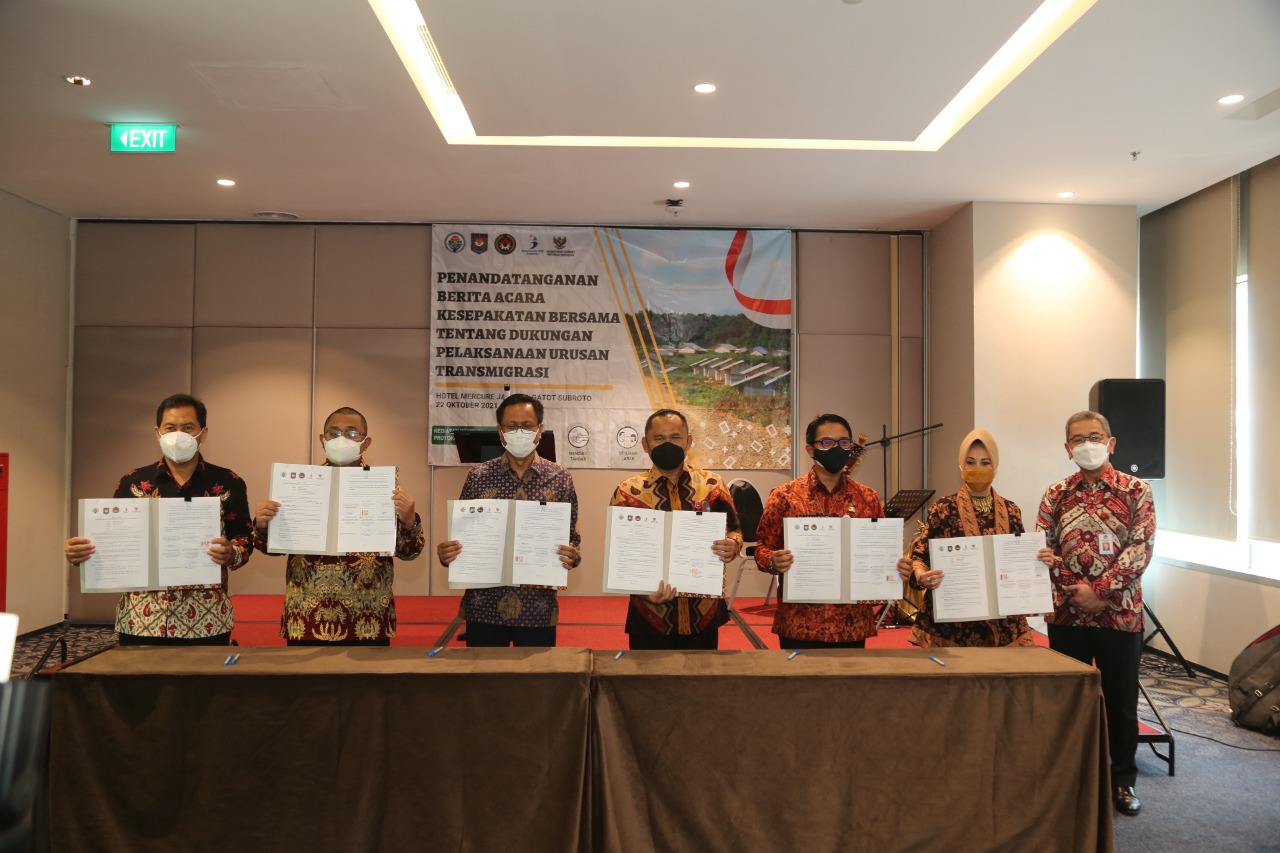 Berita Acara Kesepakatan Bersama Tentang Dukungan Pelaksanaan Urusan Transmigrasi, pada Jumat (22/10), di Hotel Mercure Jakarta.