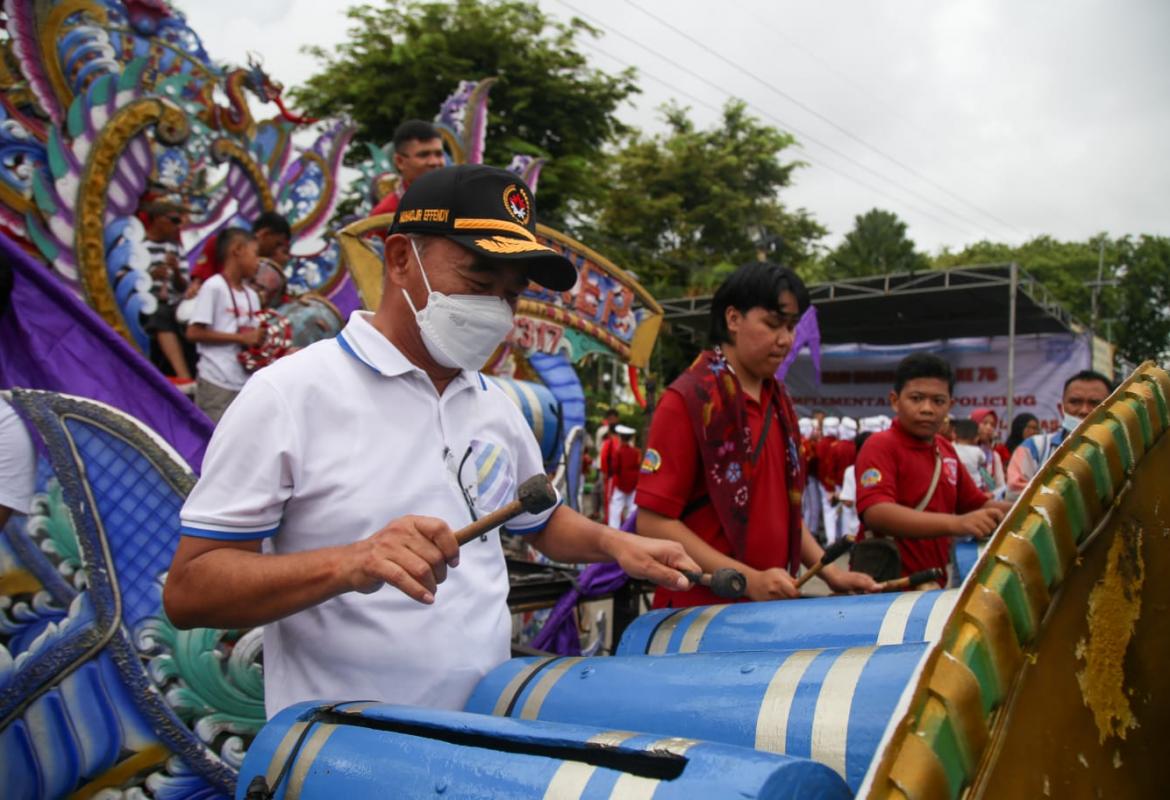 *Menko PMK Jalan Pagi Sambil Jajal Alat Musik Tong Tong