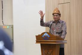 Menko PMK Muhadjir Effendy memberi arahan dalam Rakor Percepatan Penghapusan Kemiskinan Ekstrem di Desa Padansari, Ka
