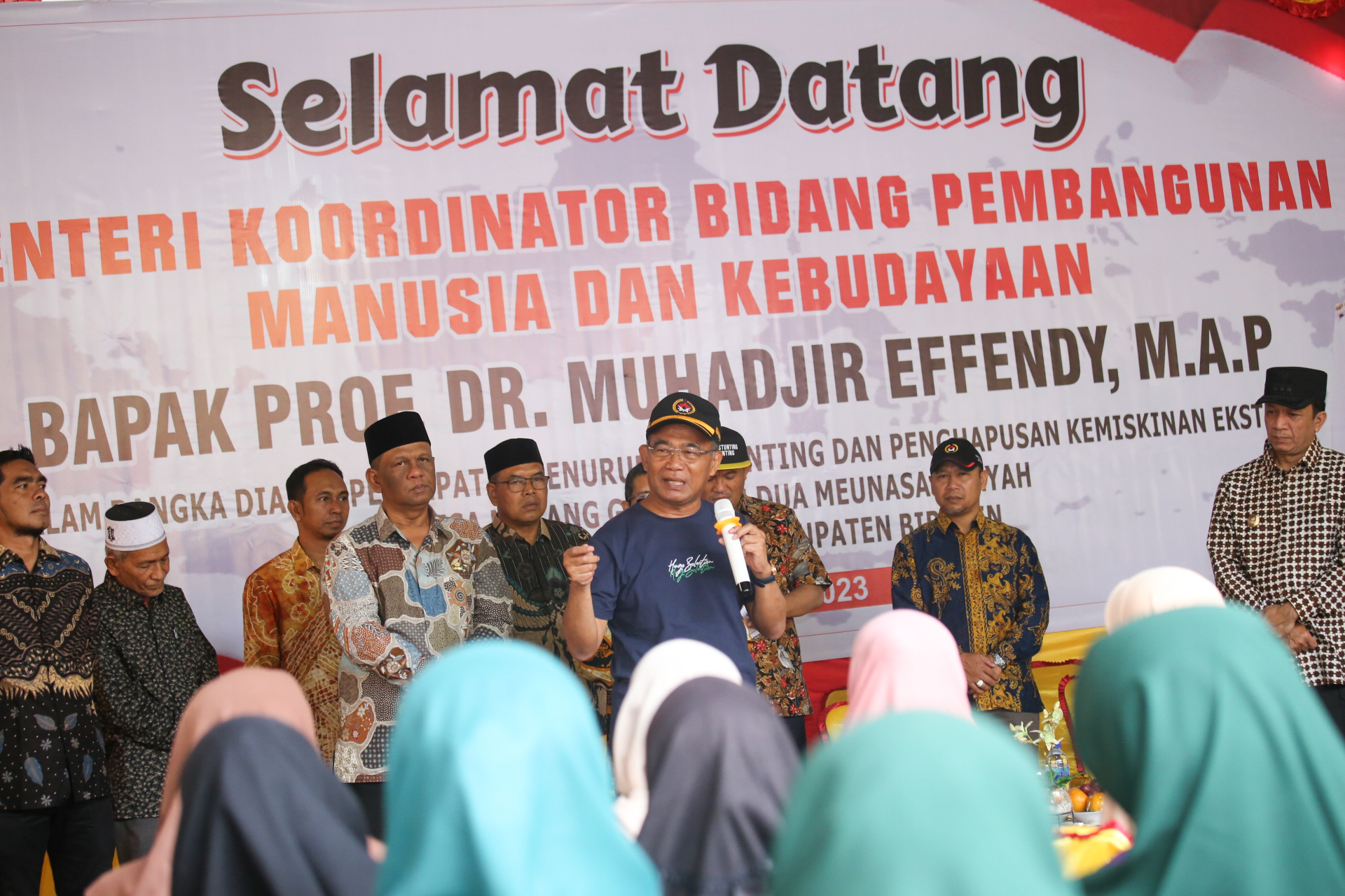 Muhadjir Effendy (Menko PMK) menghadiri dialog bersama pemerintah daerah dan warga Bireun yang bertempat di Gampong (kampung) Matang Glumpang Dua Meunasah Dayah, Bireun, Aceh, pada Sabtu (4/3). Dialog secara fokus membahas percepatan penurunan stunting dan penghapusan kemiskinan ekstrem.