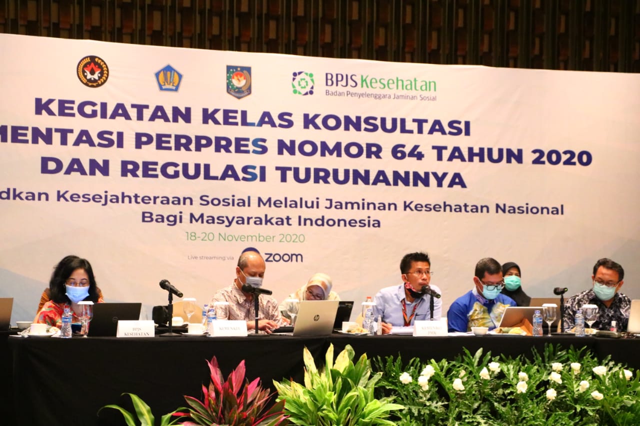 Kelas konsultasi tersebut merupakan tindak lanjut rapat koordinasi antar kementerian/lembaga pada 5 November 2020 dalam rangka monitoring dan evaluasi implementasi Peraturan Presiden No. 64/2020 dan regulasi turunannya. Salah satu poin pada hasil rapat koordinasi tersebut adalah adanya urgensi untuk melaksanakan advokasi dan pengendalian kebijakan implementasi Perpres 64/2020 & regulasi turunannya guna memastikan kesiapan penganggaran JKN bagi pemda yg dianggap berpotensi belum menganggarkan secara penuh program JKN thn 2020 dan 2021.