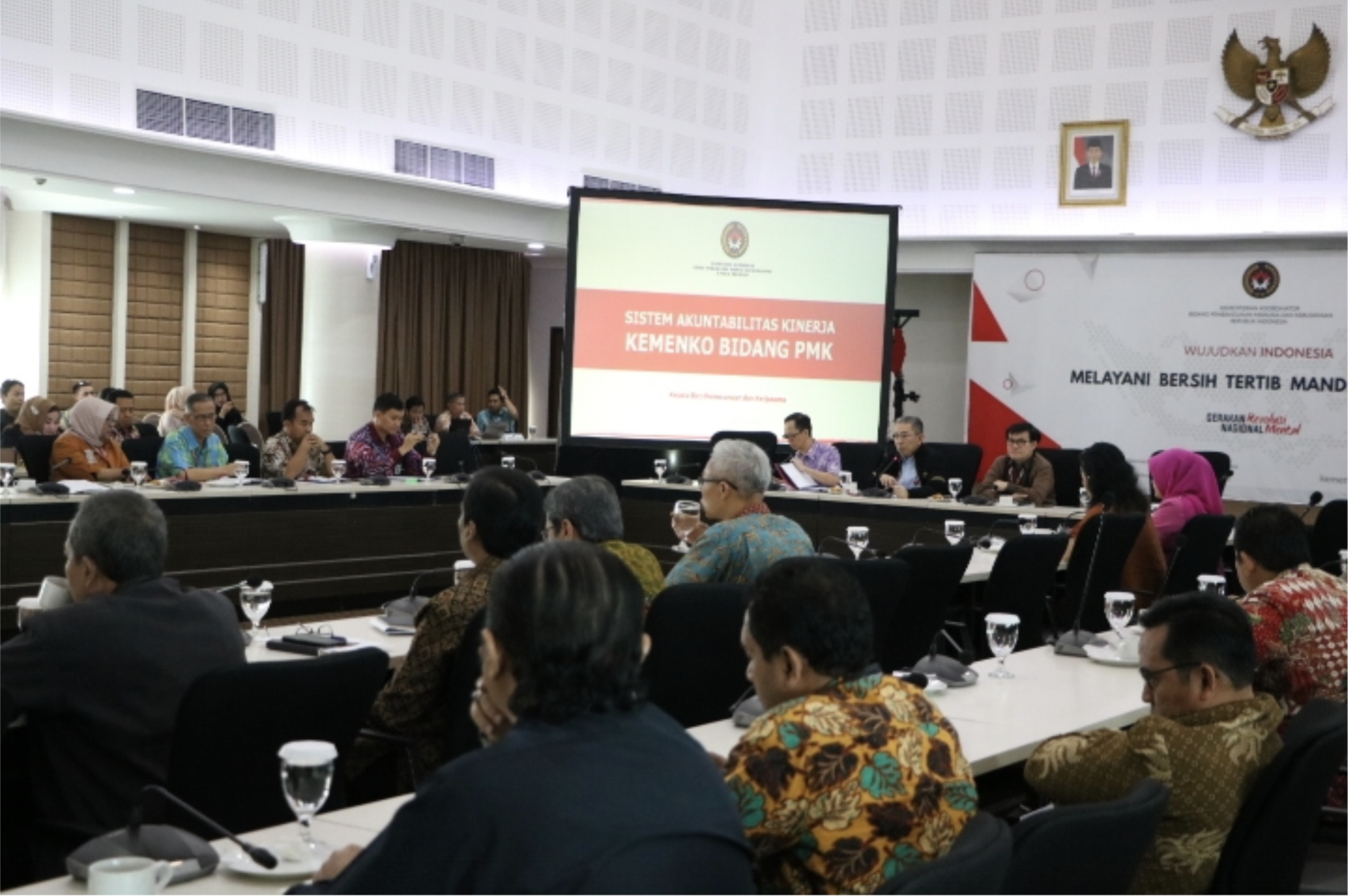 Jakarta (13/08) – Seskemenko PMK, Y.B. Satya Sananugraha, didampingi oleh Deputi Bidang Koordinasi Perlindungan Perempuan dan Anak Kemenko PMK, Ghafur Dharmaputra, dan Kepala Biro Perencanaan dan Kerjasama Kemenko PMK, Yohan, pagi ini membuka acara sosialisasi sistem Akuntabilitas Kinerja di Lingkungan Kemenko PMK di ruang rapat lantai 7 Gedung Kemenko PMK, Jakarta. Acara Sosialisasi ini dihadiri oleh para pejabat eselon II, III, IV dan staf pelaksana.