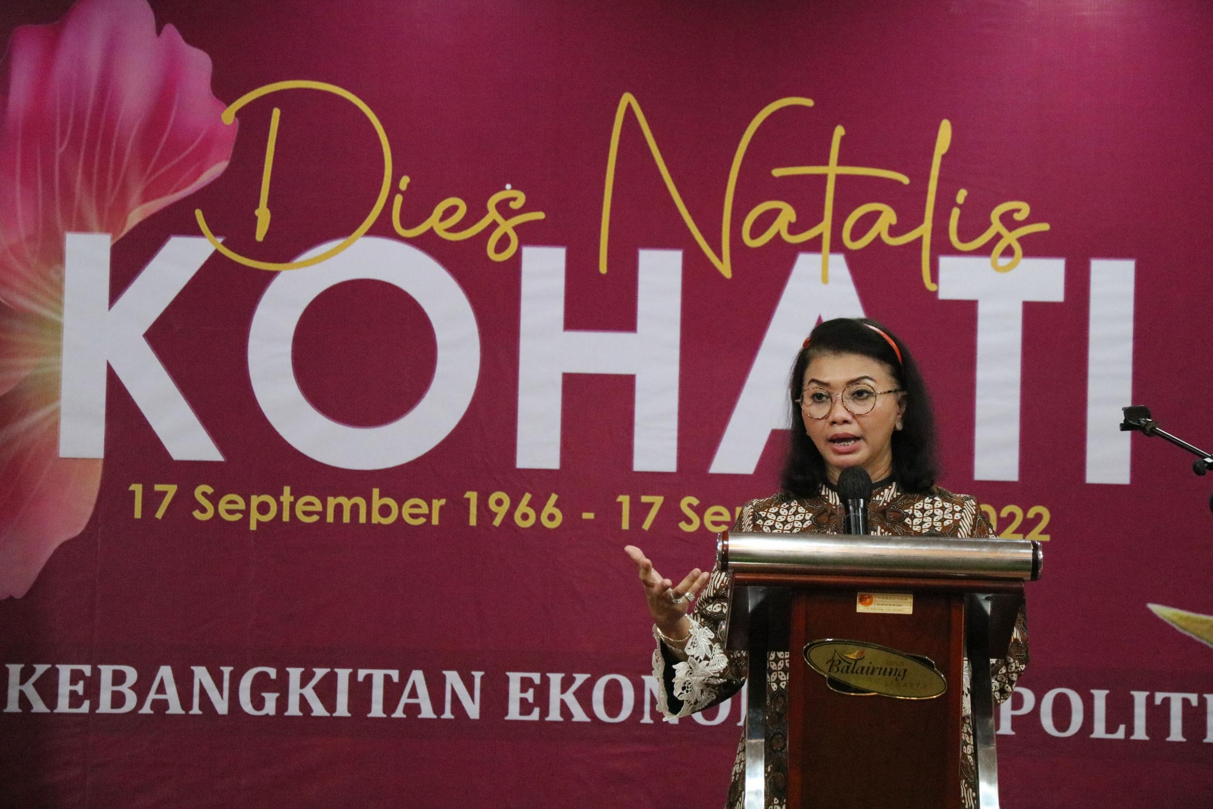 KEMENKO PMK -- Deputi Bidang Koordinasi Peningkatan Kualitas Anak, Perempuan dan Pemuda Kemenko PMK, Femmy Eka Kartika Putri, yang didampingi oleh Asisten Deputi bidang Pemberdayaan Pemuda Kemenko PMK, Linda Restaningrum, hadir dalam acara Dies Natalis KOHATI ke 56 tahun di Hotel Balairung, Jakarta, pada Jumat malam (30/9/2022).