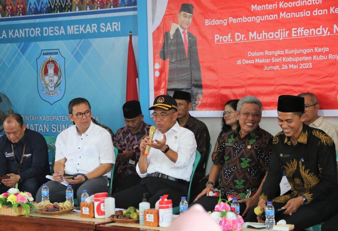 Menteri Koordinator Bidang Pembangunan Manusia dan Kebudayaan (Menko PMK) Muhadjir Effendy kunjungi Desa Mekar Sari, Kabupaten Kubu Raya, Provinsi Kalimantan Barat.