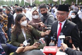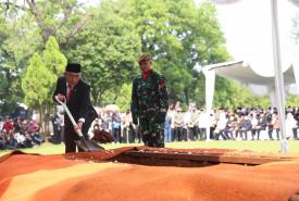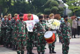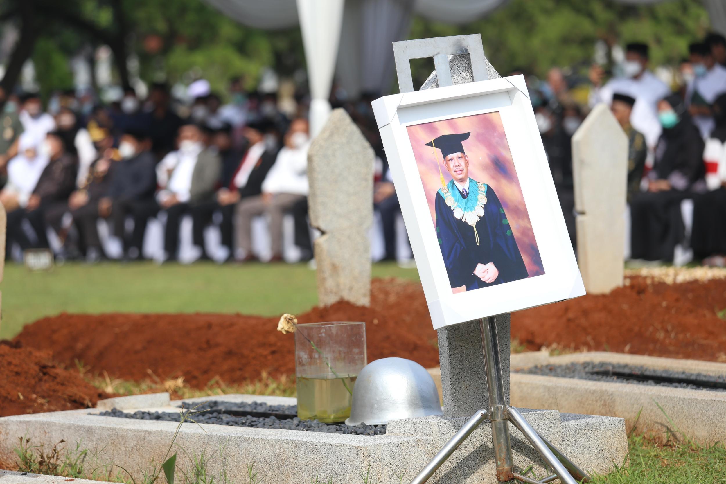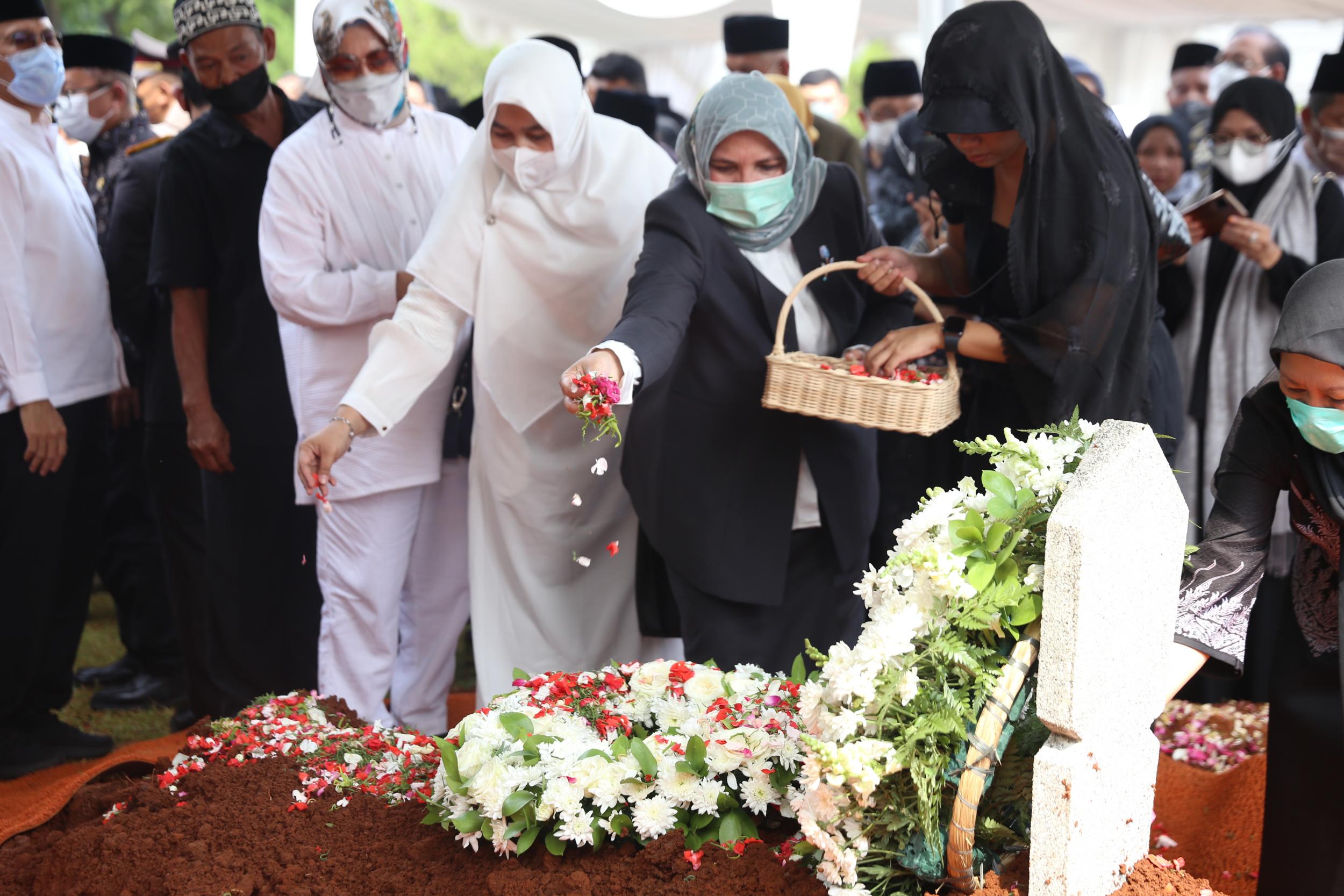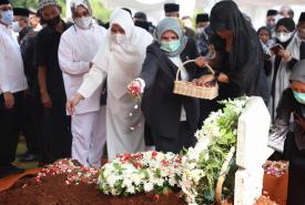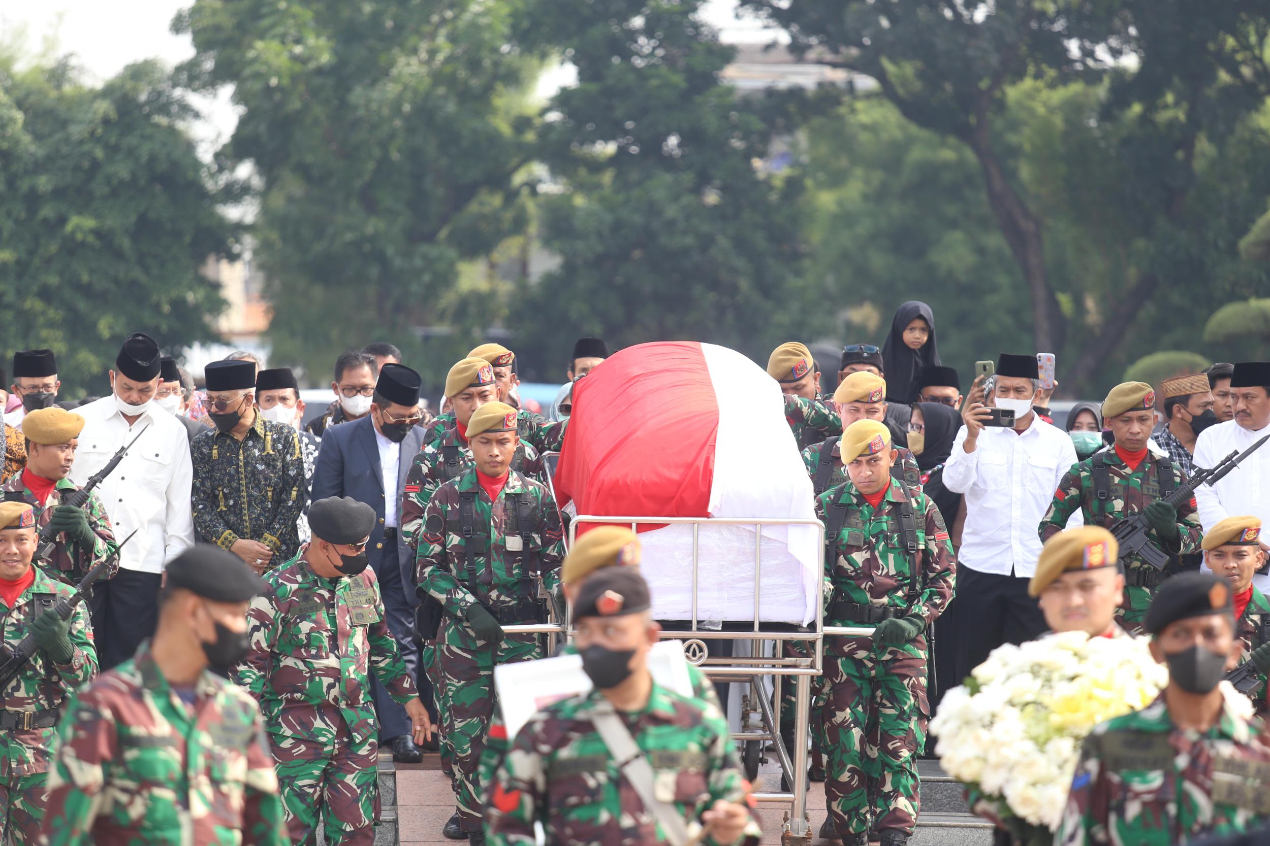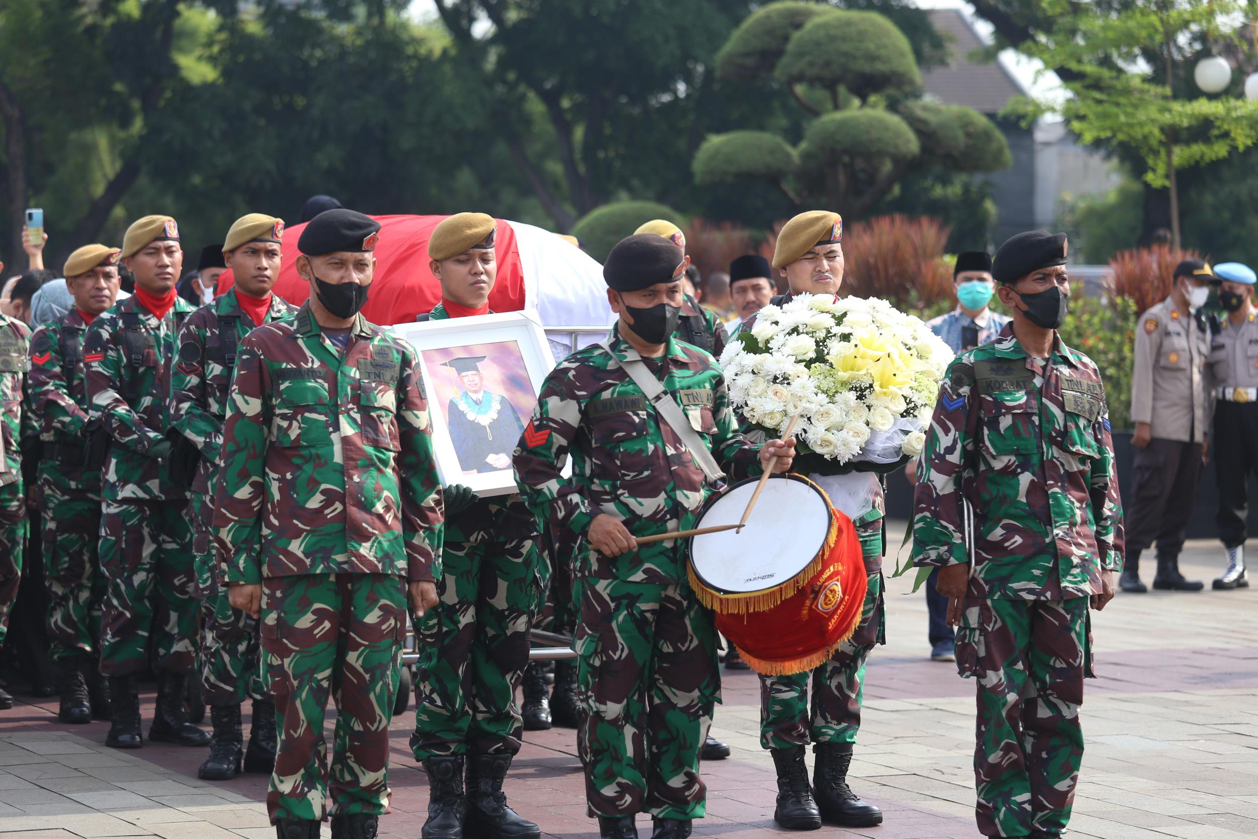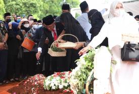 Menteri Koordinator Bidang Pembangunan Manusia dan Kebudayaan Muhadjir Effendy menjadi inspektur upacara pemakaman Azyumardi Azra di Taman Makam Pahlawan Kalibata, Jakarta, Selasa (20/9).