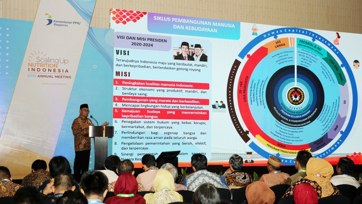 Hadir dalam Scaling Up Nutrition (SUN) Annual Meeting Tahun 2019 Menteri PPN/Bappenas Suharso Manoarfa, Wakil Menteri Agama Zainut Tauhid, Deputi Bidang Koordinasi Kesehatan Kemenko PMK Agus Suprapto, Dirjen Kesehatan Masyarakat Kemenkes Kirana Pritasari, serta Deputi Bidang PMK Bappenas Subandi Sardjoko.