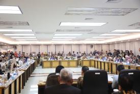 Rapat dipimpin oleh Wakil ketua DPR RI Bidang Korkesara Muhaimin Iskandar dan didampingi oleh Ketua DPR RI Puan Maharani, Wakil Ketua DPR RI Sufmi Dasco Ahmad dan Wakil Ketua DPR RI Rahmad Gobel. Sedangkan Pemerintah diwakili oleh Menteri Koordinator Bidang Pembangunan Manusia dan Kebudayaan (Menko PMK) Muhadjir Effendi, Menteri Kesehatan (Menkes) Terawan Agus Putranto, Menteri Keuangan (Menkeu) Sri Mulyani, Menteri Sosial (Mensos) Juliari Batubara, Sekretaris Jenderal Menteri Dalam Negeri (Mendagri) Hadi Prabowo, Ketua Dewan Jaminan Sosial Nasional (DJSN) Tb. A. Choesni, Kepala Badan Pusat Statistik (BPS) Suhariyanto dan Direktur Utama BPJS Kesehatan Fahmi Idris. Rapat kerja gabungan dan rapat dengar pendapat ini dihadiri oleh anggota DPR-RI dari Komisi II, VIII, IX dan XI.
