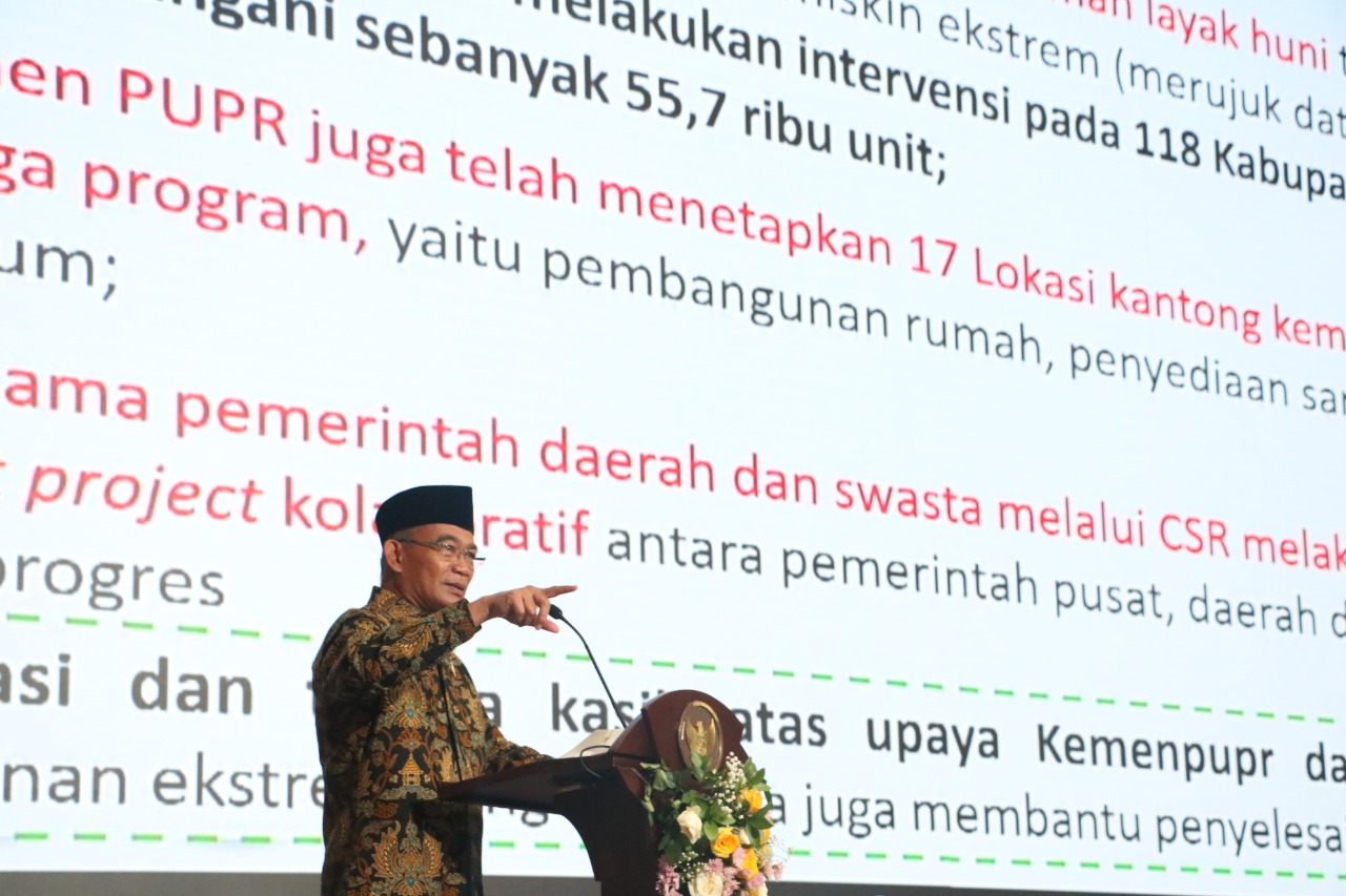 Namun demikian, dalam upaya penghapusan kemiskinan ekstrem, Kementerian PUPR tercatat telah menangani 55 ribu Rumah Tidak Layak Huni (RTLH) dan 17 lokus dilakukan intervensi secara terintegrasi.