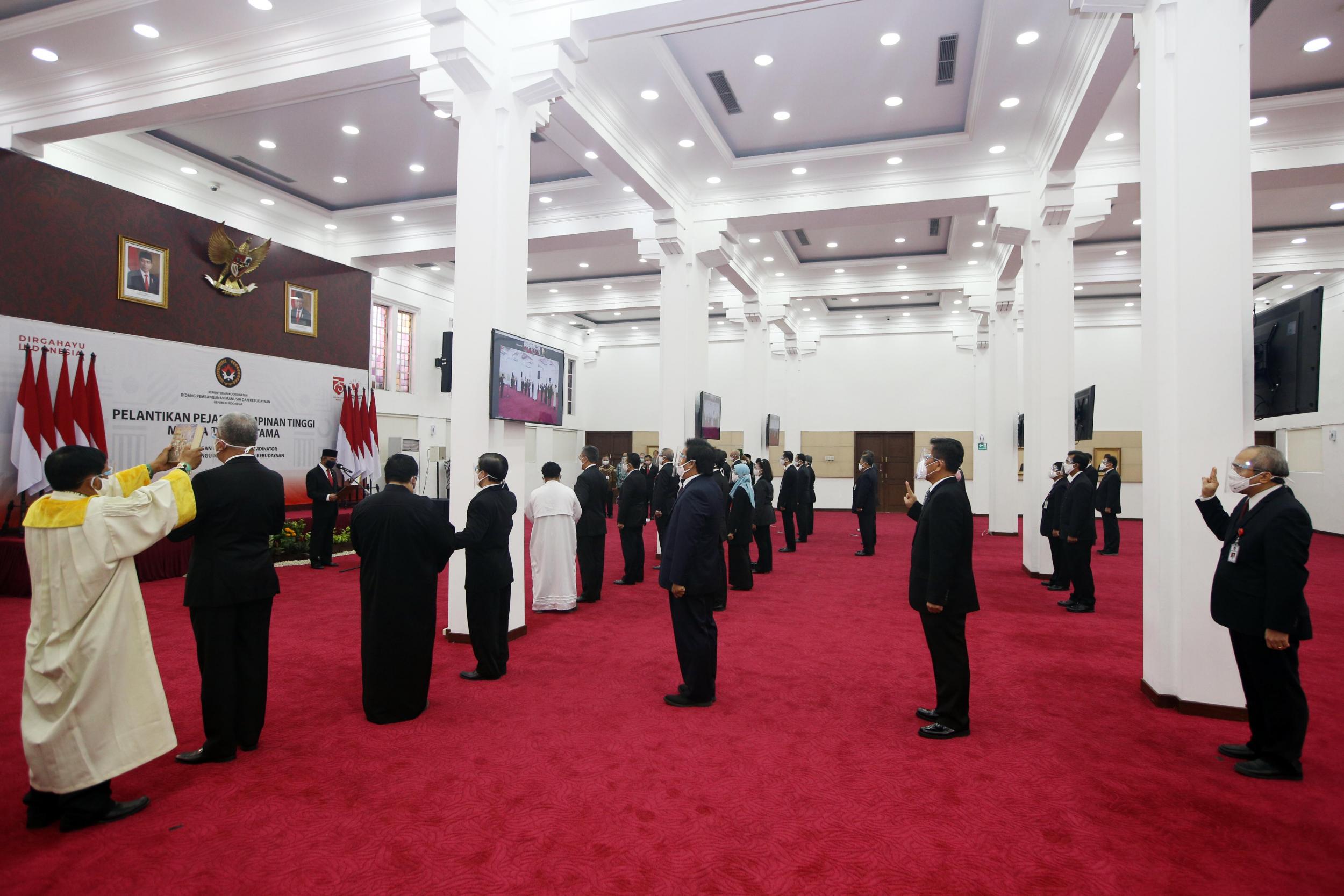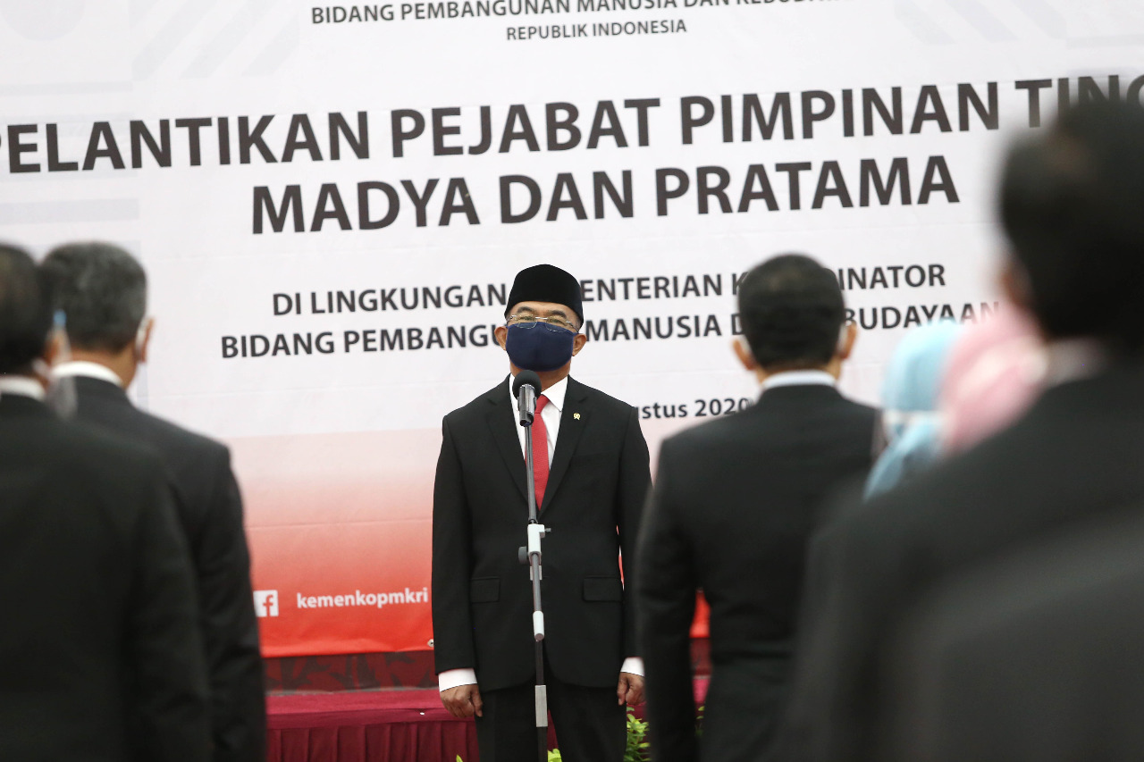 Berita Utama Koordinasi PMK 06 Aug, 2020 Menko PMK Lantik Pejabat Eselon I dan Eselon II Kontributor Foto: Dwi Prasetya Berita Utama Berita dan Artikel Terkait Koordinasi PMK 26 Sep, 2025 Kemenko PMK Raih Predikat WTP ke-16 Kali Berturut-turut: Kemenko PMK Komitmen Wujudkan Tata Kelola Keuangan yang Transparan dan Akuntabel Peningkatan Kualitas Pendidikan Budaya Koordinasi PMK 26 Sep, 2025 Perkuat Koordinasi Lintas Pilar Demi Visi Komunitas ASEAN 2045 melalui Pertemuan SOC-COM Ke-21 Koordinasi PMK 19 Sep, 2025 Pemerintah Tetapkan 17 Hari Libur Nasional dan 8 Hari Cuti Bersama Tahun 2026 Koordinasi PMK 04 Sep, 2025 Kemenko PMK Gelar Konsinyering Flagship: Sinkronisasi Program Prioritas dengan Anggaran dan Tata Kelola Digital Koordinasi PMK 24 Aug, 2025 Indonesia Dorong Sinergi Pemangku Kepentingan ASEAN, Wujudkan Pembangunan Berkelanjutan Kesehatan Koordinasi PMK Siaran Pers 21 Aug, 2025 Menko PMK Tanggapi Cepat Kasus Anak Meninggal di Sukabumi: Setiap Anak Harus Terlindungi