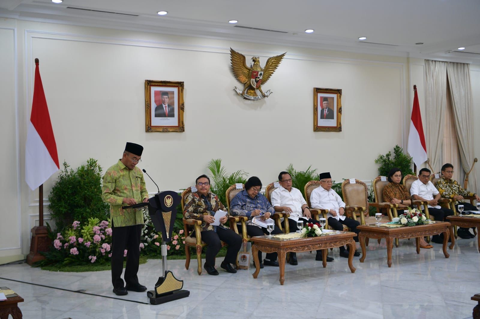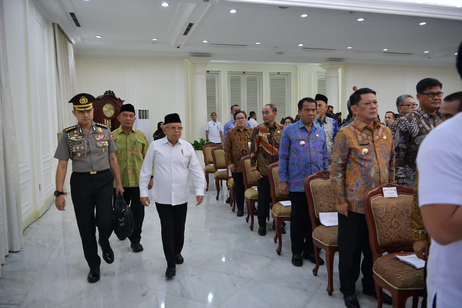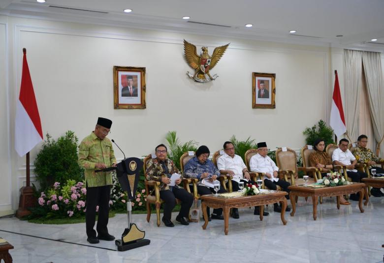 KEMENKO PMK — Menteri Koordinator Bidang Pembangunan Manusia dan Kebudayaan (Menko PMK) mendampingi Wakil Presiden Ma'ruf Amin memimpin Rapat Koordinasi Nasional terkait Percepatan Penurunan Stunting Tahun 2023 di Istana Wakil Presiden, pada Jumat (6/10).