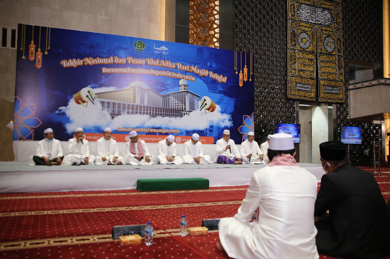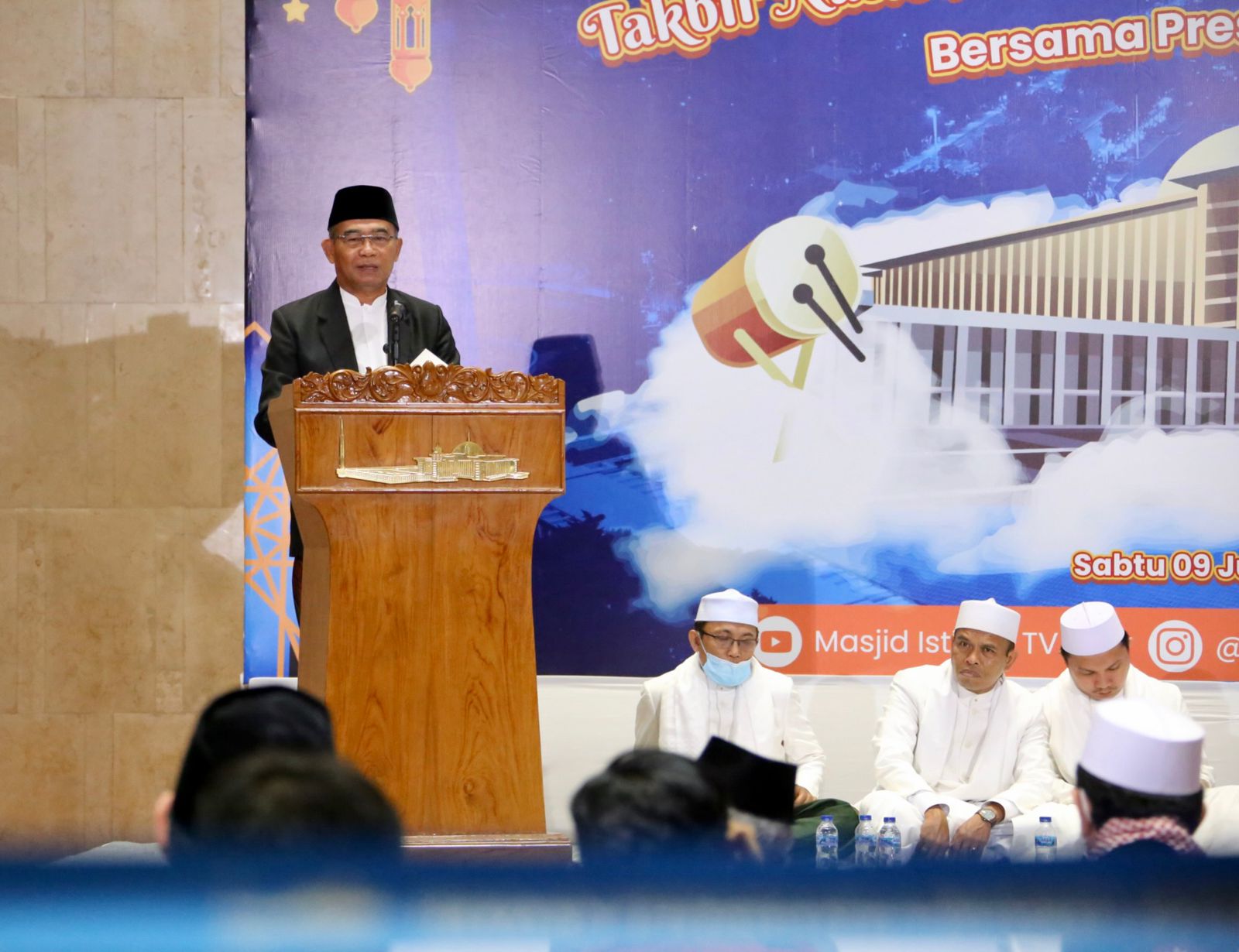 Menko PMK Mewakili Presiden RI Joko Widodo memberikan arahan sekaligus membuka acara Malam Takbiran Idul Adha yang diselenggarakan di Masjid Istiqlal (9/07). Acara yang berlangsung secara luring dan daring tersebut diikuti oleh sejumlah kepala daerah dan perwakilan negara sahabat. Direncanakan pada minggu (10/07) Presiden Jokowi berserta jajaran kabinet Indonesia Bersatu akan melaksanakan Solat Idul Adha di Masjid Istiqlal