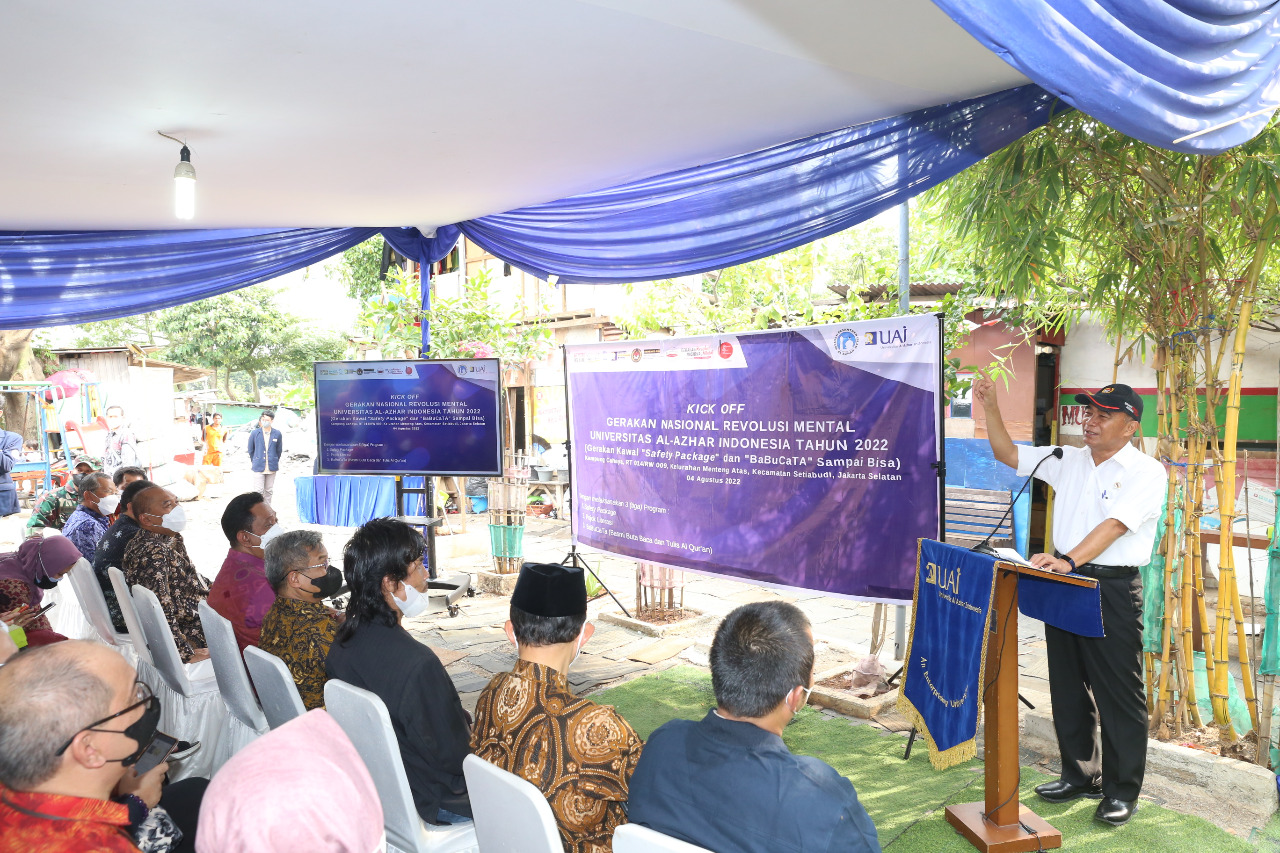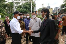 Kemenko PMK - Menko PMK Memberikan arahan sekaligus meresmikan acara kick off GNRM Universitas Al Azhar Indonesia Tahun 2022 di Kampung Cahaya, Kelurahan Menteng Pulo, Setiabudi Jakarta Selatan (05/08). Dalam kesempatan itu juga, Menko PMK mengunjungi masyarakat yang berada di dalam TPU Menteng Pulo tersebut untuk mendengarkan berbagai macam masukan dan keluhan masyarakat terkait Bansos, Administrasi Penduduk, KIS, dan KIP/KJP.