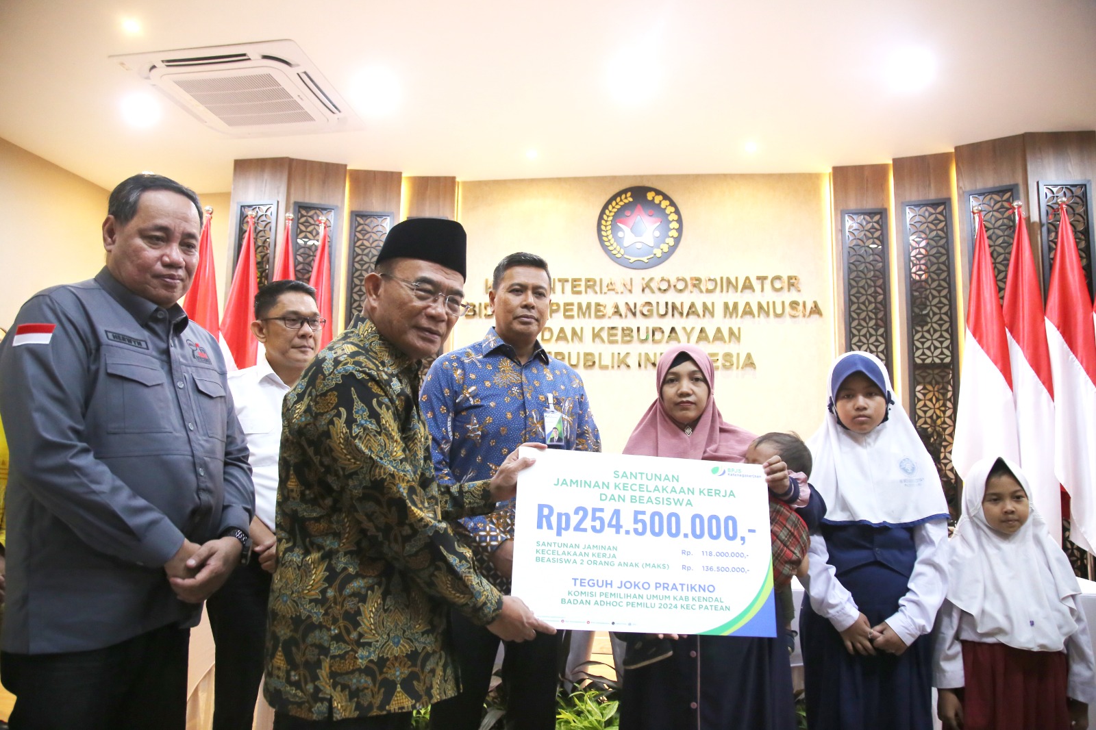 KEMENKO PMK — “Penyerahan santunan kepada petugas ad hoc ini pertama kali dilakukan karena petugas ad hoc pemilu dimasukkan ke dalam BPJS Ketenagakerjaan sebelum bertugas. Pelaksanaan ini diharapkan dapat menjadi contoh baik untuk pemilu yang akan datang.”