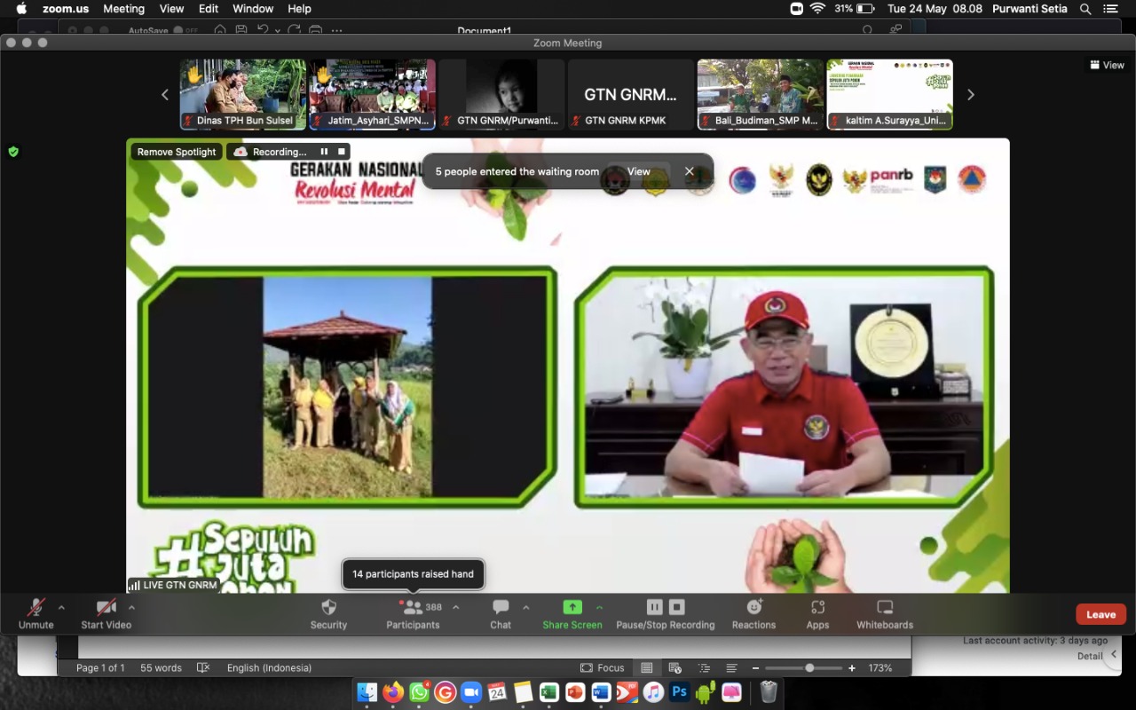 “Tapi ingat, Pak Presiden sudah me-wanti-wanti jangan hanya jadi jargon. Betul-betul, kalau judulnya 10 juta pohon, ya ditanam 10 juta. Jangan 10 juta judulnya, yang ditanam hanya ratusan. Selain itu catat, berapa jumlah pohon yang ditanam, jenisnya apa, ditanam dimana, yang merawat siapa. Saya mau laporannya itu, “tegas Muhadjir kepada para peserta launching yang dikemas secara hybrid.
