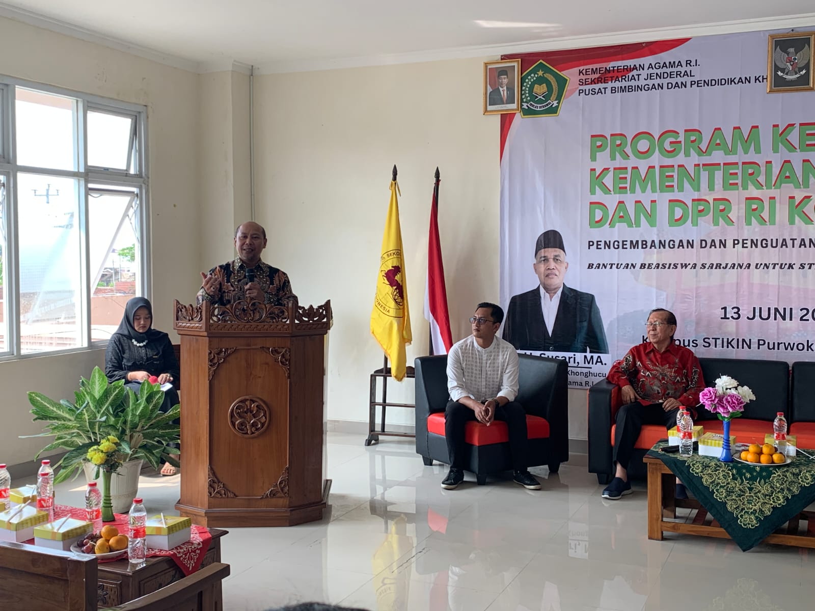 KEMENKO PMK -- Deputi Bidang Koordinasi Peningkatan Kualitas Pendidikan dan Moderasi Beragama Kemenko PMK Warsito menghadiri kegiatan “Program Kemitraan Kementerian Agama dengan Komisi VIII DPR RI” dengan tema “Penguatan Kurikulum Sekolah Tinggi Khonghucu Indonesia (STIKIN)” yang digelar pada Selasa (12/6) di Kampus STIKIN Purwokerto, Kabupaten Banyumas.