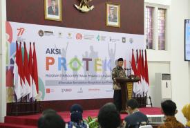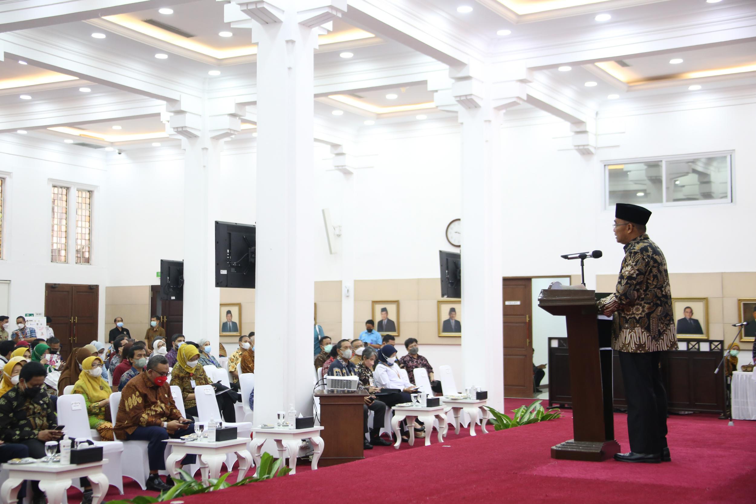 Menko PMK Muhadjir Effendy membuka acara Peluncuran Aksi Program Terpadu Penanggulangan TBC di Heritage Kemenko PMK, Rabu (31/8/2022). Aksi Proteksi bertujuan untuk meningkatkan peran masyarakat dan mitra dalam percepatan penanggulangan TBC dengan fokus utama pada upaya promotif, preventif, kuratif komplementer dan rehabilitatif.