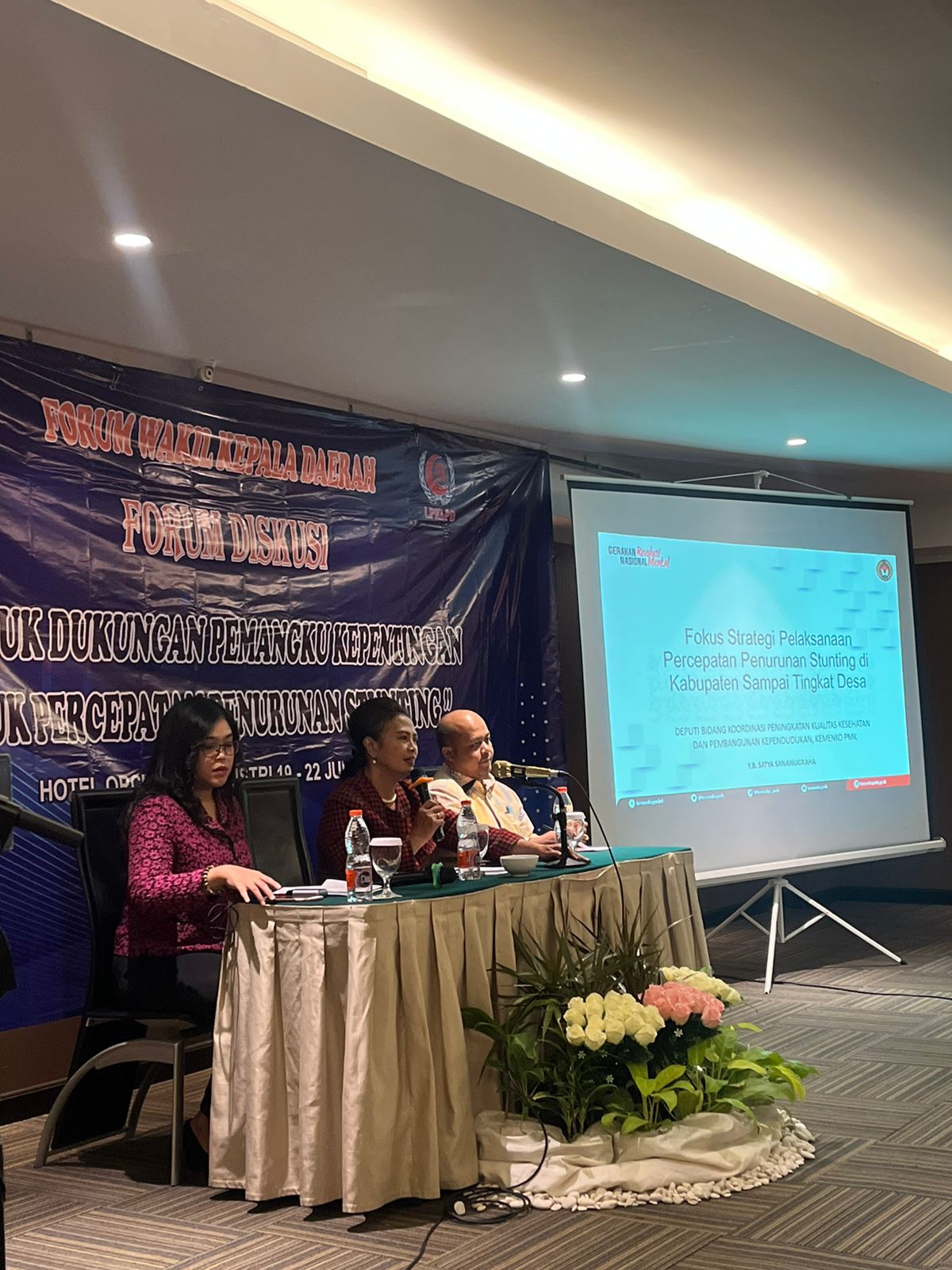 Hal tersebut disampaikan oleh Asisten Deputi Ketahanan Gizi dan Promosi Kesehatan kemenko PMK pada Forum Wakil Kepala Daerah (FORWAKADA) di Hotel Orchard Industri Jakarta, pada Kamis (20/7), selanjutnya Jelsi menyampaikan bahwa dengan tugas dan fungsi tersebut, para wakil bupati/walikota harusnya memahami betul semua proses yang ada dalam percepatan penurunan stunting mulai dari perencanaan, pelaksanaan sampai evaluasi serta informasi-informasi terkini terkait stunting di setiap daerahnya dan intervensi yang dilakukan oleh para kepala OPD di setiap daerah, tentu harus dikawal oleh para wakil bupati/walikota. Jelsi, mengatakan Kemenko PMK telah melaksanakan rapat koordinasi dengan 19 K/L untuk penguatan kebijakan ketua TPPS serta kekosongan para Kepala Daerah di dimana diharapkan ada kebijakan teknis yang diterbitkan oleh kementerian terkait.