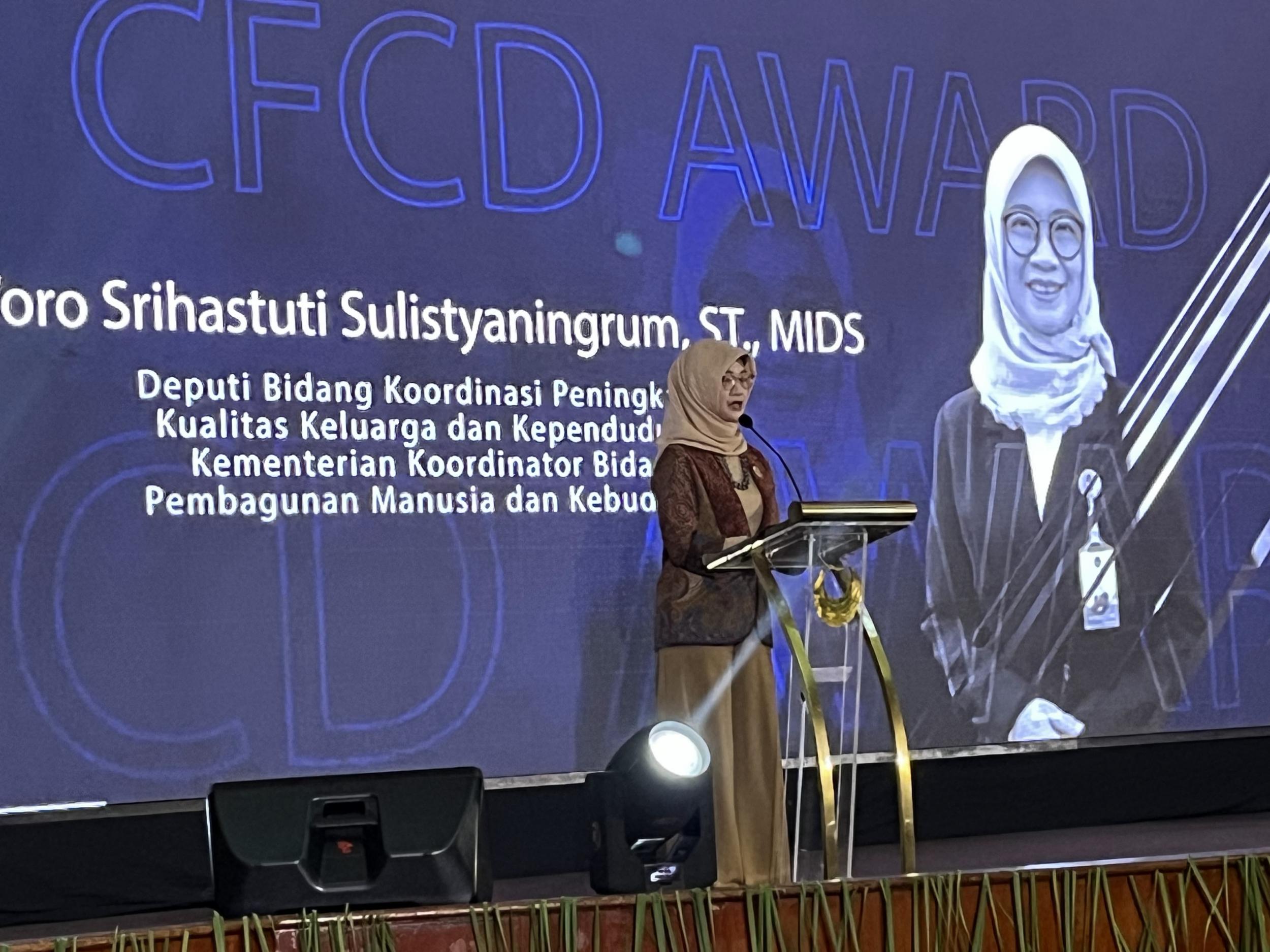 Deputi Bidang Koordinasi Peningkatan Kualitas Keluarga dan Kependudukan Kemenko PMK Woro Srihastuti Sulistyaningrum, hadir mewakili Menko PMK Pratikno dan memberikan sambutan pembuka sekaligus menyerahkan piagam penghargaan kepada para penerima CESA dan BERBAKTI Awards tahun ini.