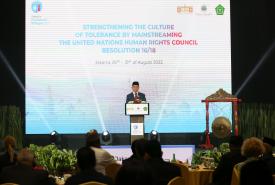 Yaqut Cholil Qoumas selaku Menteri Agama Republik Indonesia turut menyatakan pentingnya toleransi berdasarkan agama dan kepercayaan dalam menciptakan di tengah perkembangan global saat ini. Dalam pidatonya, menteri yang akrab disapa Gus Yaqut tersebut menyatakan pengalaman Indonesia dalam merawat toleransi erat kaitannya dengan budaya demokrasi yang dianut oleh masyarakat Indonesia.