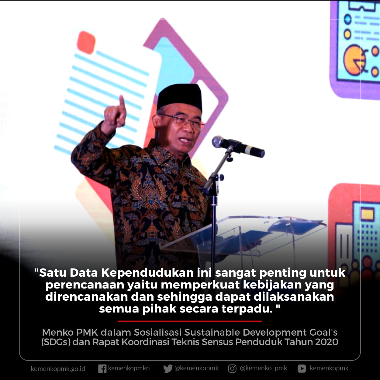 Menko PMK mengatakan, untuk membangun satu data  kependudukan diperlukan sinkronisasi antara data dari Dukcapil Kemendagri  yang  de jure dan teregistrasi sesuai  dokumen kependudukan, dengan BPS yang dilakukan secara de facto melalui sensus, survey.