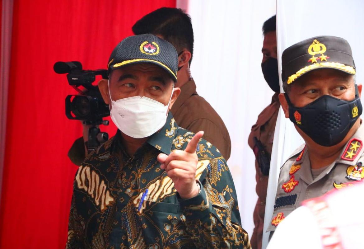 Menko PMK Muhadjir Effendy sedang meninjau lokasi bencana longsor di Cimanggu, Kabupaten Sumedang, Jawa Barat, Kamis