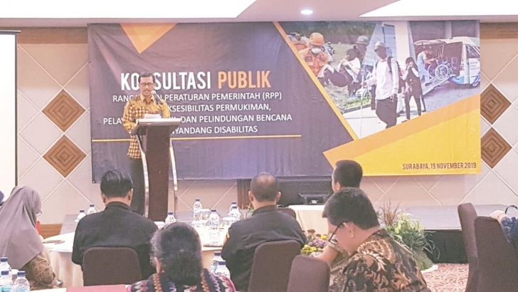 “Komitmen pemerintah, mulai menempatkan hak-hak penyandang disabilitas dalam kebijakan praktis pemerintah melalui identifikasi bahwa penyandang disabilitas harus menikmati hak-hak dasar setara dengan nondisabilitas. Karena itu, konsep dasar penyusunan RPP tentang Aksesibilitas terhadap Permukiman, Pelayanan Publik dan Pelindungan Bencana bagi penyandang disabilitas ini merupakan bentuk pengakuan bahwa mereka bagian dari keragaman umat manusia dan mempunyai hak sama dengan setiap orang,” papar Deputi bidang Koordinasi Pengentasan Kemiskinan dan Perlindungan Sosial, Kemenko PMK, Tb Achmad Choesni dalam sambutan dan arahannya yang dibacakan oleh Asisten Deputi Pemberdayaan Disabilitas dan Lansia, Ade Rustama di tengah forum Konsultasi Publik Rancangan Peraturan Pemerintah (RPP) tentang aksesibilitas terhadap permukiman, pelayanan publik dan perlindungan bencana bagi disabilitas di Kota Surabaya, Selasa pagi.