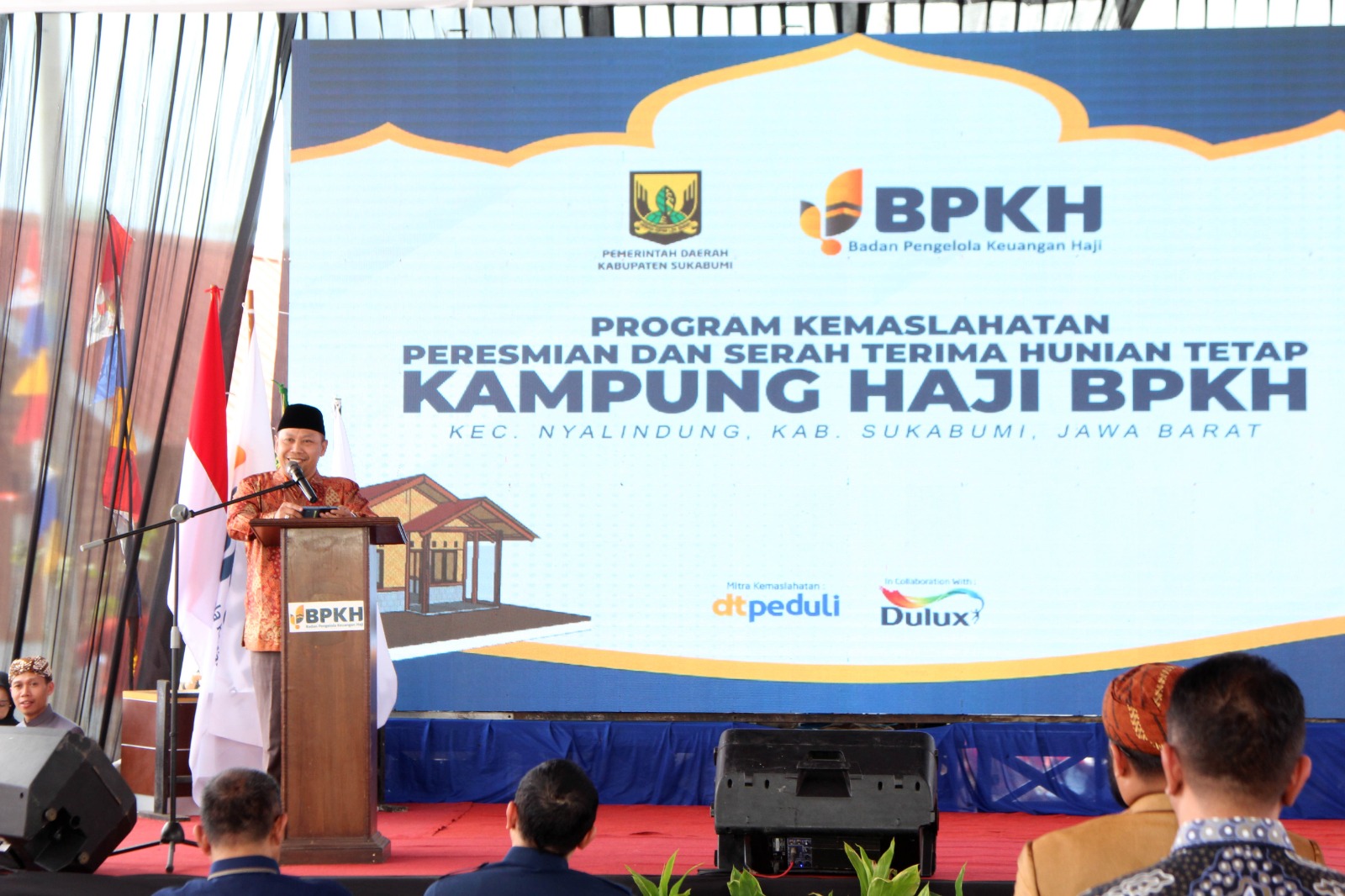 KEMENKO PMK -- Plt. Deputi Bidang Koordinasi Peningkatan Kualitas Pendidikan dan Moderasi Beragama Kemenko PMK Warsito hadir mewakili Menko PMK pada Kegiatan Peresmian Program Kemaslahatan Kampung Haji Badan Pengelola Keuangan Haji (BPKH), di Desa Kertaangsana, Kec. Nyalindung, Kab. Sukabumi Jawa Barat, pada Rabu (14/8/2024).