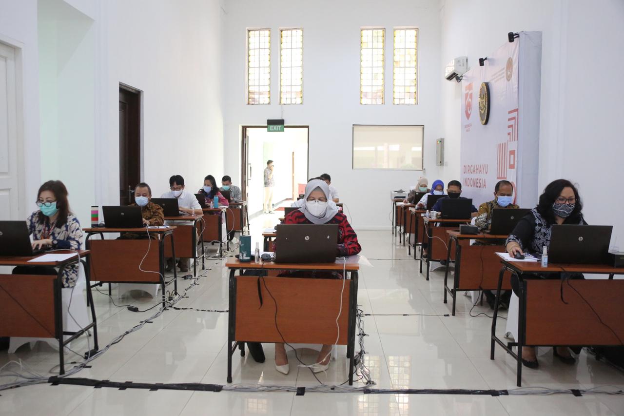 Jakarta (9/9) -- Kementerian Koordinator Bidang Pembangunan Manusia dan Kebudayaan (Kemenko PMK) menyelenggarakan tes penulisan makalah dalam rangka seleksi jabatan pimpinan tinggi madya dan pimpinan tinggi pratama di Ruang Heritage Kantor Kemenko PMK, Jakarta, Rabu (9/9).
