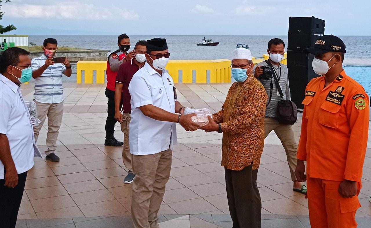 Kegiatan dilanjutkan dengan penyerahan masker secara simbolis kepada Perwakilan Tokoh Agama, Basarnas Kota Ternate, BPBD Prov. Malut dan perwakilan para pelajar dengan jumlah masker yang berikan sebanyak 11.200 pcs.