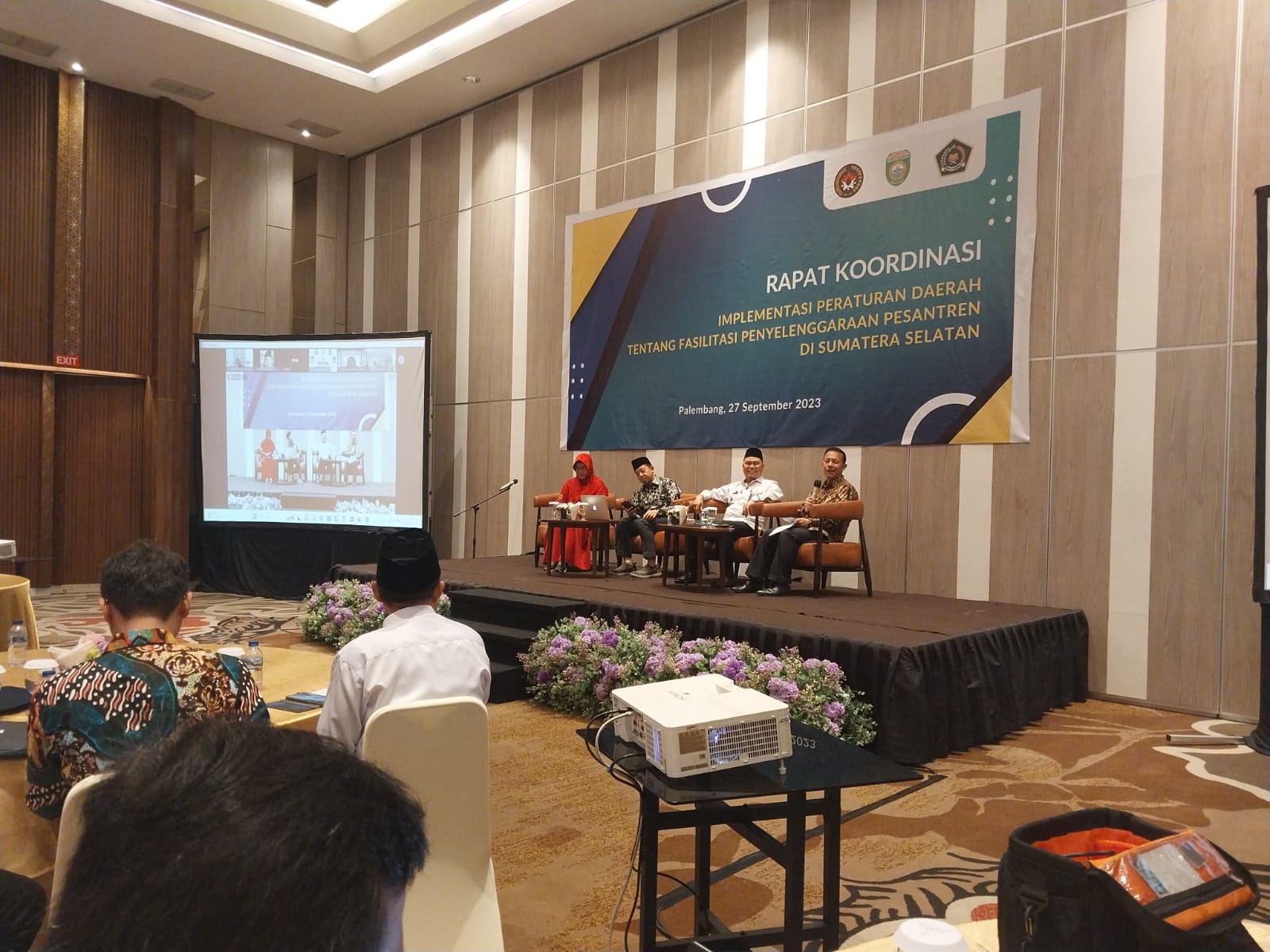 Kepala Biro Kesra Sumatera Selatan Sunarto, juga menyampaikan melalui Perda No. 3 tahun 2021 tentang Fasilitasi Penyelenggaraan Pesantren, Sumatera Selatan menjadi salah satu dari 6 Provinsi yang berkomitmen mendorong peningkatan kualitas pesantren. Perda tersebut juga diperkuat dengan terbitnya Peraturan Gubernur No.37 Tahun 2022 tentang Pelaksanaan Fasilitasi Pesantren. Diharapkan bantuan untuk Pesantren tidak hanya bantuan dana akan tetapi berbagai fasilitasi program dan kerjasama dengan berbagai stakeholder untuk kemandirian Pesantren.