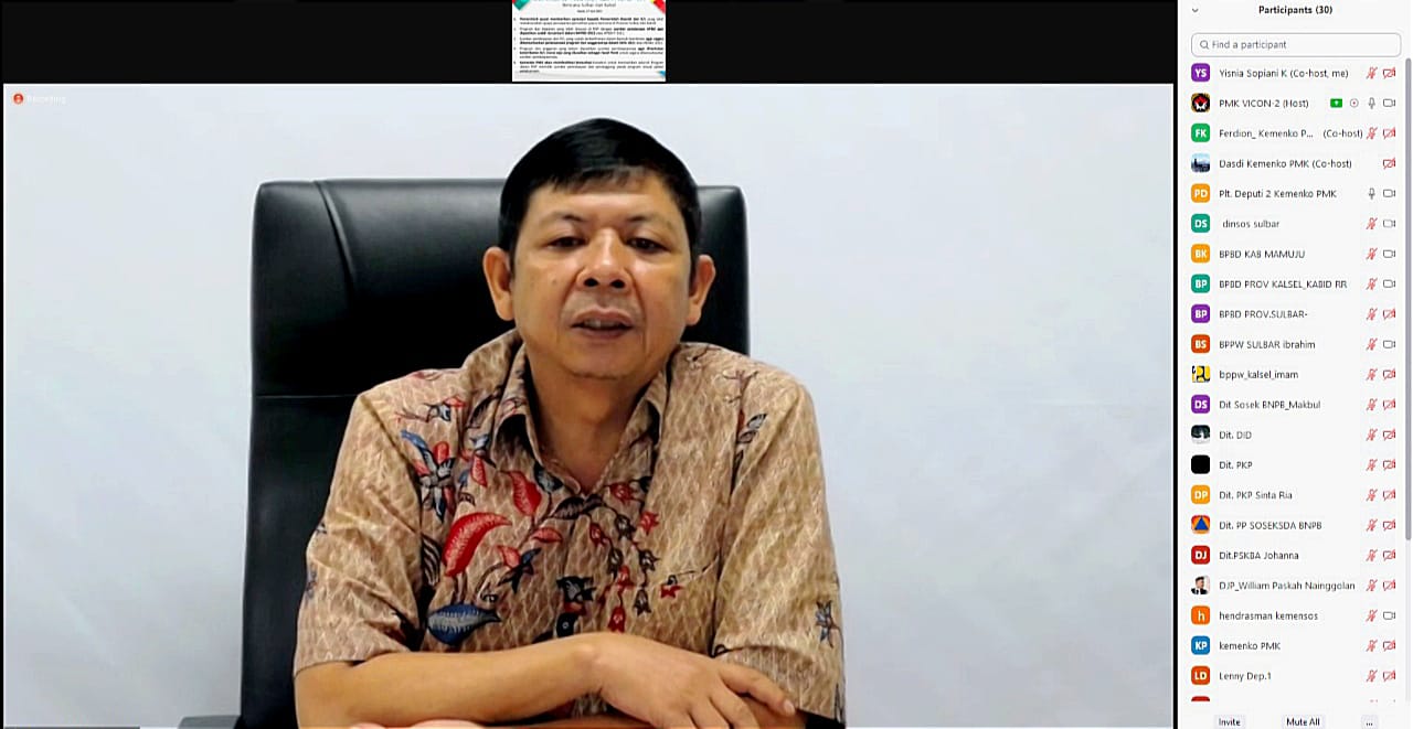 “Keberhasilan proses pemulhan pascabencana perlu komitmen politik para pemimpin daerah dan lembaga yang didukung dengan pendanaan, pendampingan dan pengawasan yang optimal”, tutur Plt. Deputi Nelwan saat membuka rapat koordinasi secara daring.