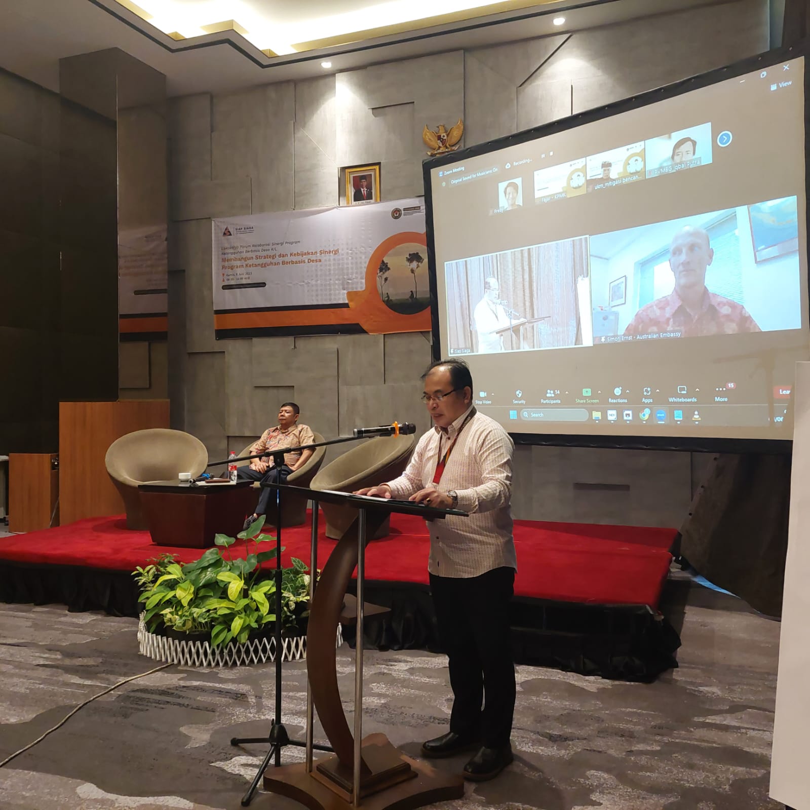 Merespon urgensitas tersebut, Kementerian Koordinator Bidang Pembangunan Manusia dan Kebudayaan (Kemenko PMK) melalui Deputi Bidang Koordinasi Pemerataan Pembangunan Wilayah dan Penanggulangan Bencana mendorong penguatan kolaborasi multipihak dengan menggelar Lokakarya Membangun Strategi dan Kebijakan Sinergi Program Berbasis Desa di Hotel Akmani Jakarta pada Kamis (22/07). Lokaakrya diselenggarakan atas kerjasama Kemenko PMK dengan SIAP SIAGA dan BNPB. Hadir dalam lokakarya tersebut perwakilan pejabat dari 17 Kementerian/Lembaga serta mitra strategis pemerintah pusat dari akademisi, lembaga swadaya, dan pemerintah daerah.