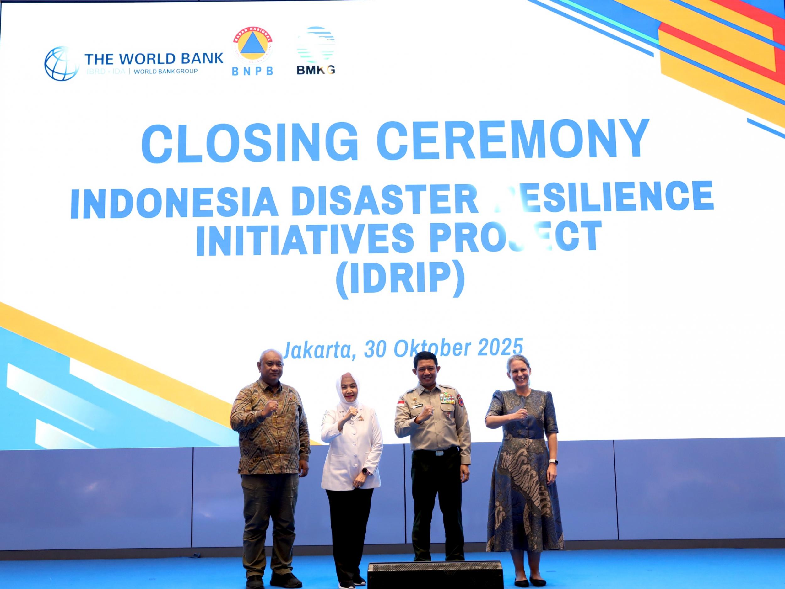 "Kami ingin memastikan hasil dan inovasi yang lahir dari IDRIP tidak berhenti di sini. Semua praktik baiknya harus kita bawa ke tahap implementasi yang lebih luas, masuk ke peta jalan aksi nasional, mendukung target Early Warning for All 2027, dan menjadi bagian dari kebijakan pembangunan manusia yang tangguh terhadap bencana," ujar Deputi Lilik.