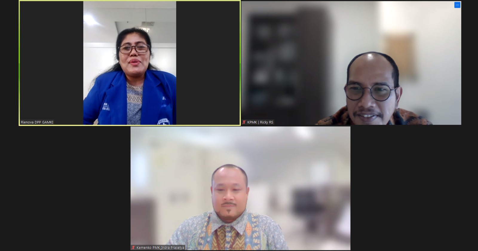 KEMENKO PMK -- Kementerian Koordinator Bidang Pembangunan Manusia dan Kebudayaan (Kemenko PMK) dalam hal ini Kedeputian Bidang Koordinasi Peningkatan Kualitas Anak, Perempuan, dan Pemuda menerima audiensi dari Gerakan Angkatan Muda Kristen Indonesia (GAMKI) secara daring, pada Jumat (6/10/2023). Audiensi GAMKI dipimpin oleh Rienova Serry Donnie berserta jajaran GAMKI dan diterima oleh Asisten Deputi Pemberdayaan Pemuda Ricky Radius Siregar.