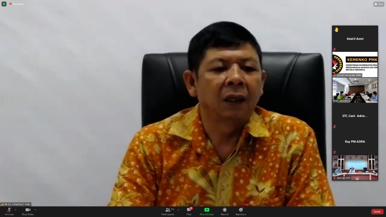 “Pemerintah akan membuka akses seluas-luasnya bagi masyarakat untuk berkolaborasi dan bergotong-royong menuntaskan permasalahan kemanusiaan khususnya dalam kebencanaan. Program Bantuan Non-Tunai (BaNTu) sebagai salah satu ikhtiar baik yang telah berhasil memenuhi kebutuhan masyarakat korban bencana harus dilanjutkan, terutama untuk saat ini di Provinsi NTT”, tutur Plt. Deputi Nelwan saat membuka rapat koordinasi secara daring.