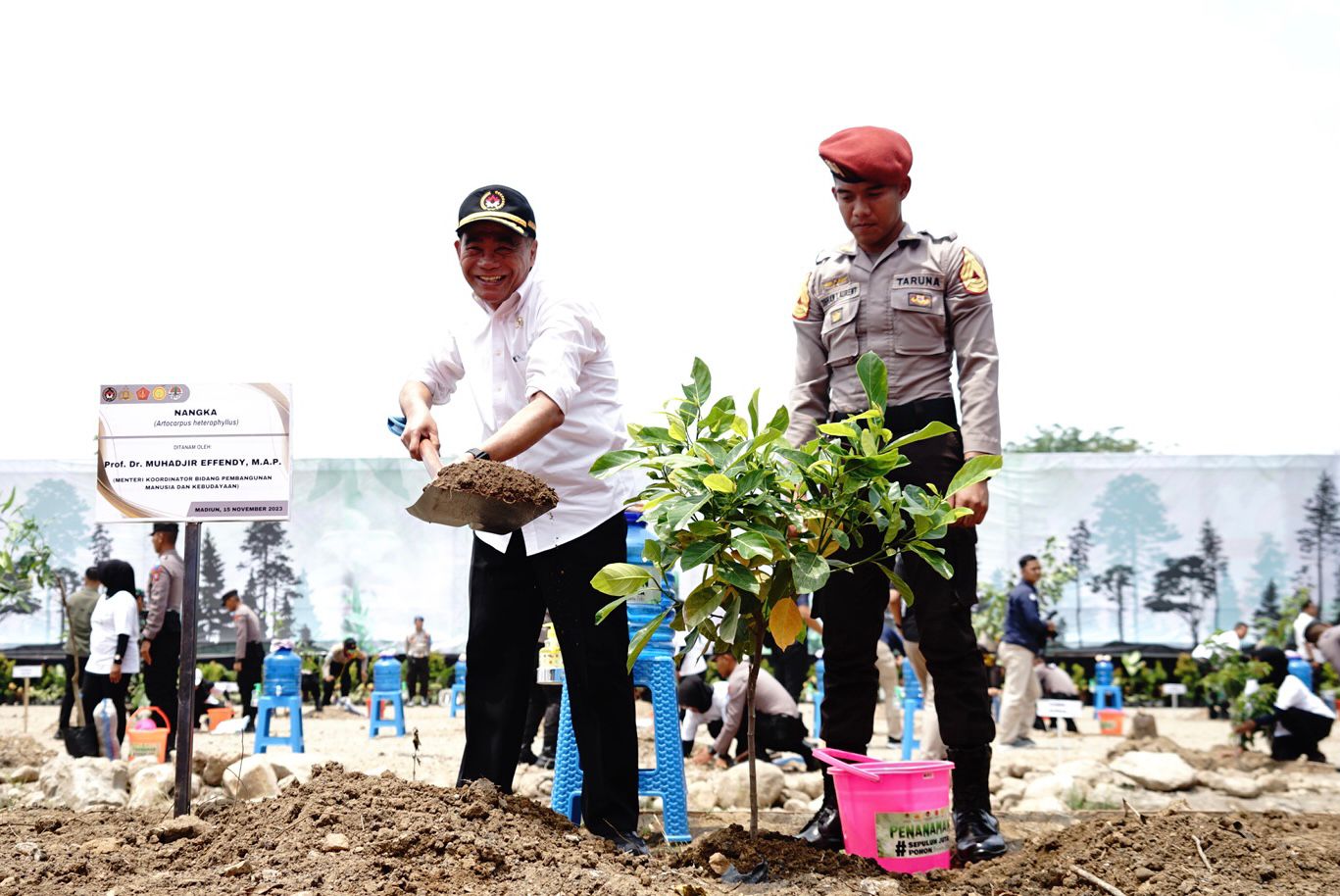 Menko PMK dan Kapolri Tanam Pohon Bareng di Madiun