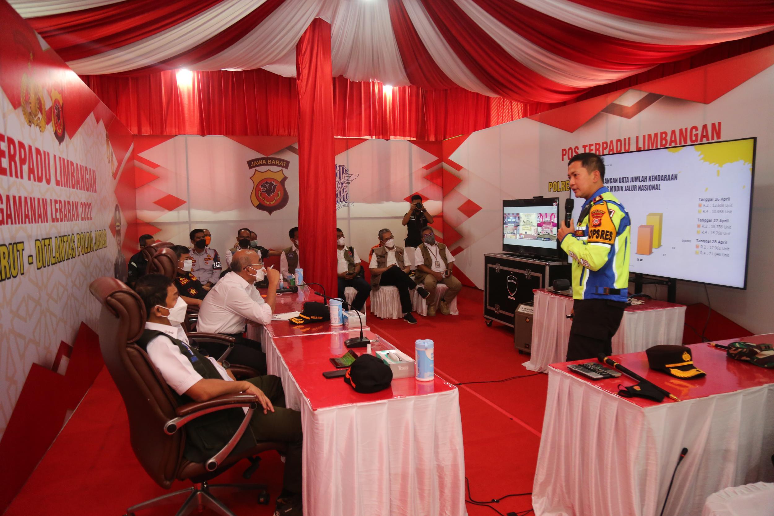 Menteri Koordinator Bidang Pembangunan Manusia dan Kebudayaan (Menko PMK) Muhadjir Effendy meninjau kesiapan Kabupaten Garut dalam menangani pemudik, di Posko Terpadu Pengamanan Lebaran 2022 Rest Area GTC Limbangan, Kabupaten Garut, Jawa Barat, Jumat (29/4). Dalam tinjauannya di Posko Terpadu GTC Limbangan, Muhadjir melihat posko-posko dari masing-masing instansi terkait yang bersiaga dalam penanganan arus mudik.