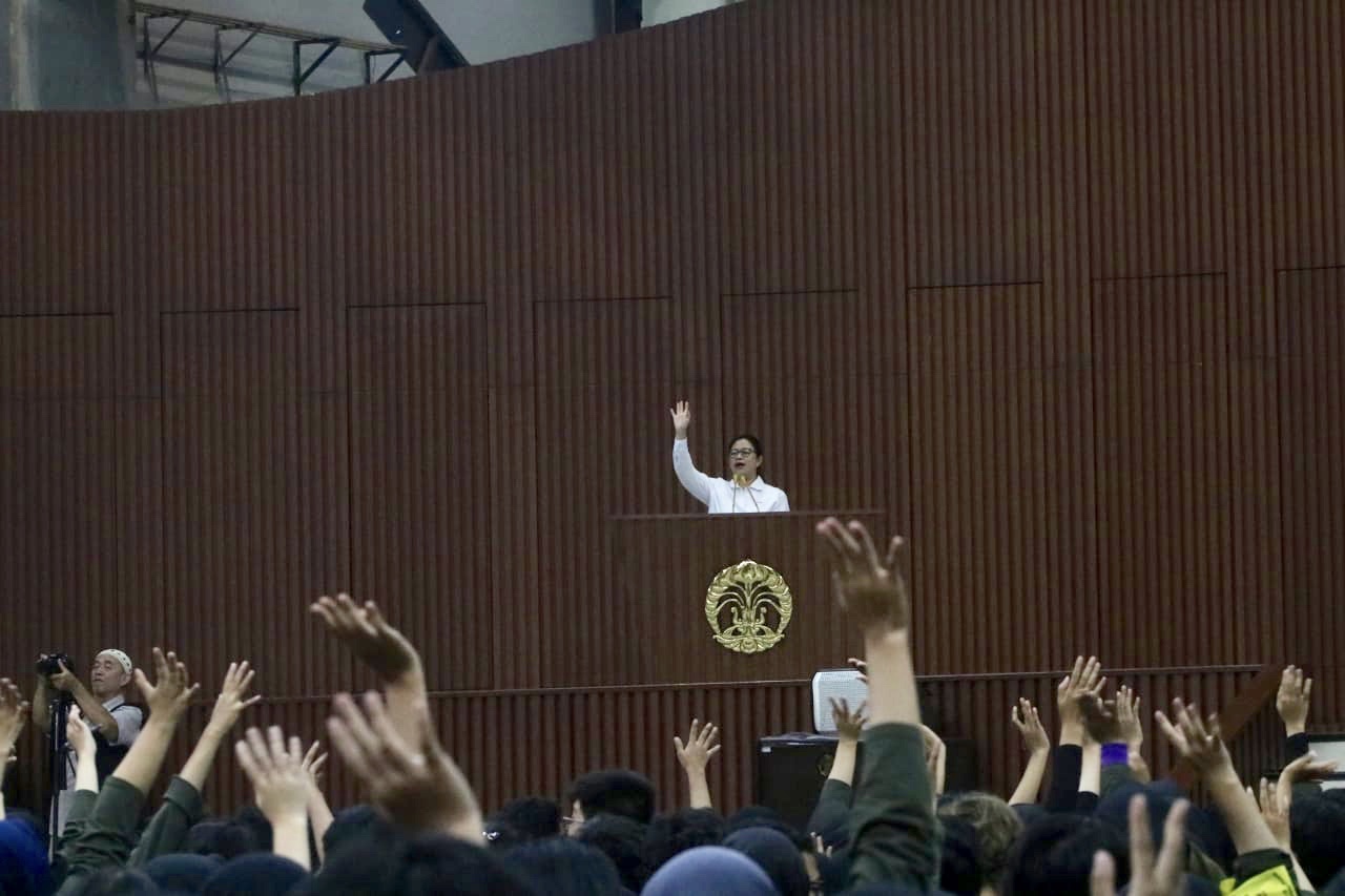 Menko PMK, Puan Maharani mengungkapkan pesan penting itu di tengah forum Kegiatan Awal Mahasiswa Baru (KAMABA) di Universitas Indonesia Tahun 2019, Jumat siang di Balairung UI, Depok, Jawa Barat. Selain dihadiri oleh Para Maba UI yang berjumlah sekitar 8500-an orang, acara turut dihadiri oleh Rektor UI dan Jajaran Rektorat serta Fakultas di lingkungan Universitas Indonesia.